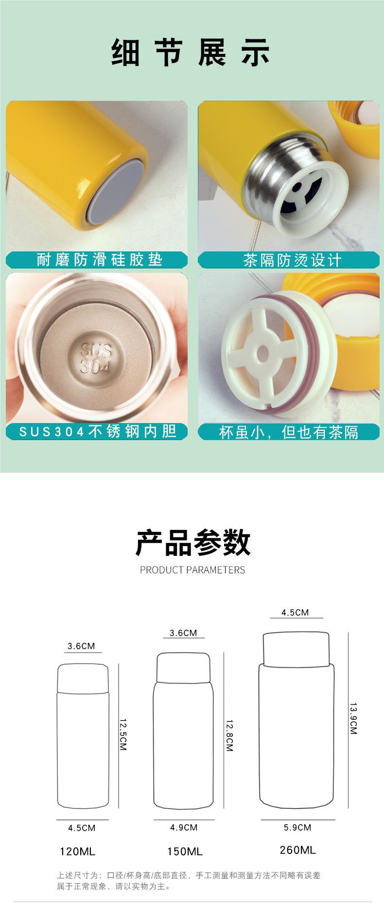 남성과 여성을위한 304 미니 보온병 컵 휴대용 스몰 사이즈 간단한 작은 물 컵 슬렌더 100ml 초소형 용량