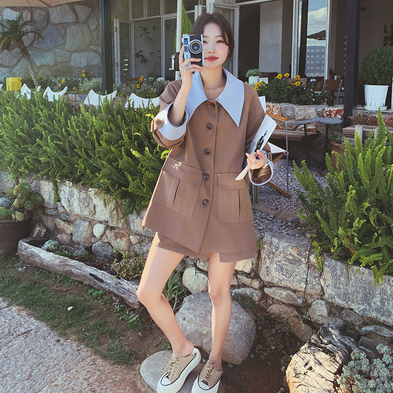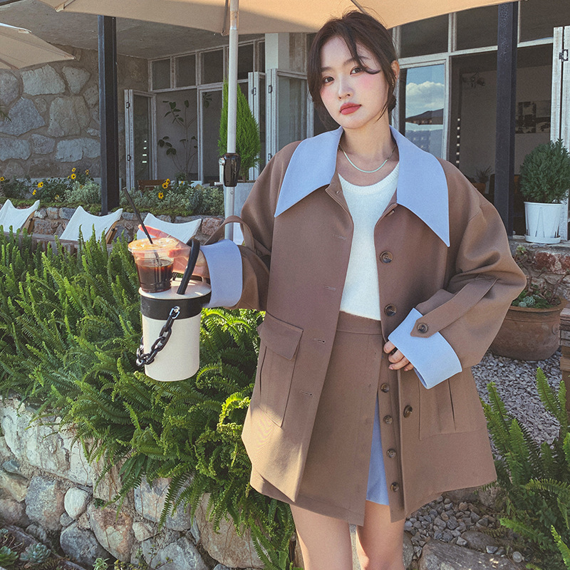 진짜 샷 패션 콘트라스트 컬러 세트 오버스커트 세트 2025 새로운 한국어 버전 달콤한 기질 나이 감소 코트 스커트 두 조각