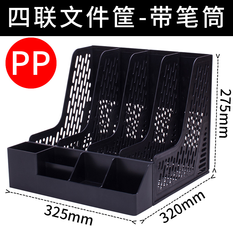 • 펜 홀더가 없는 4링크 문서 바구니, 검정색