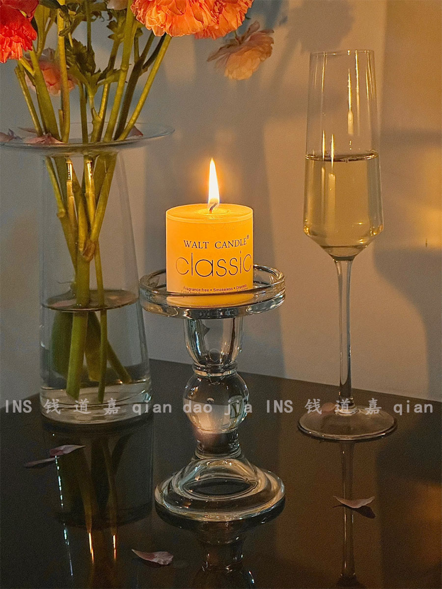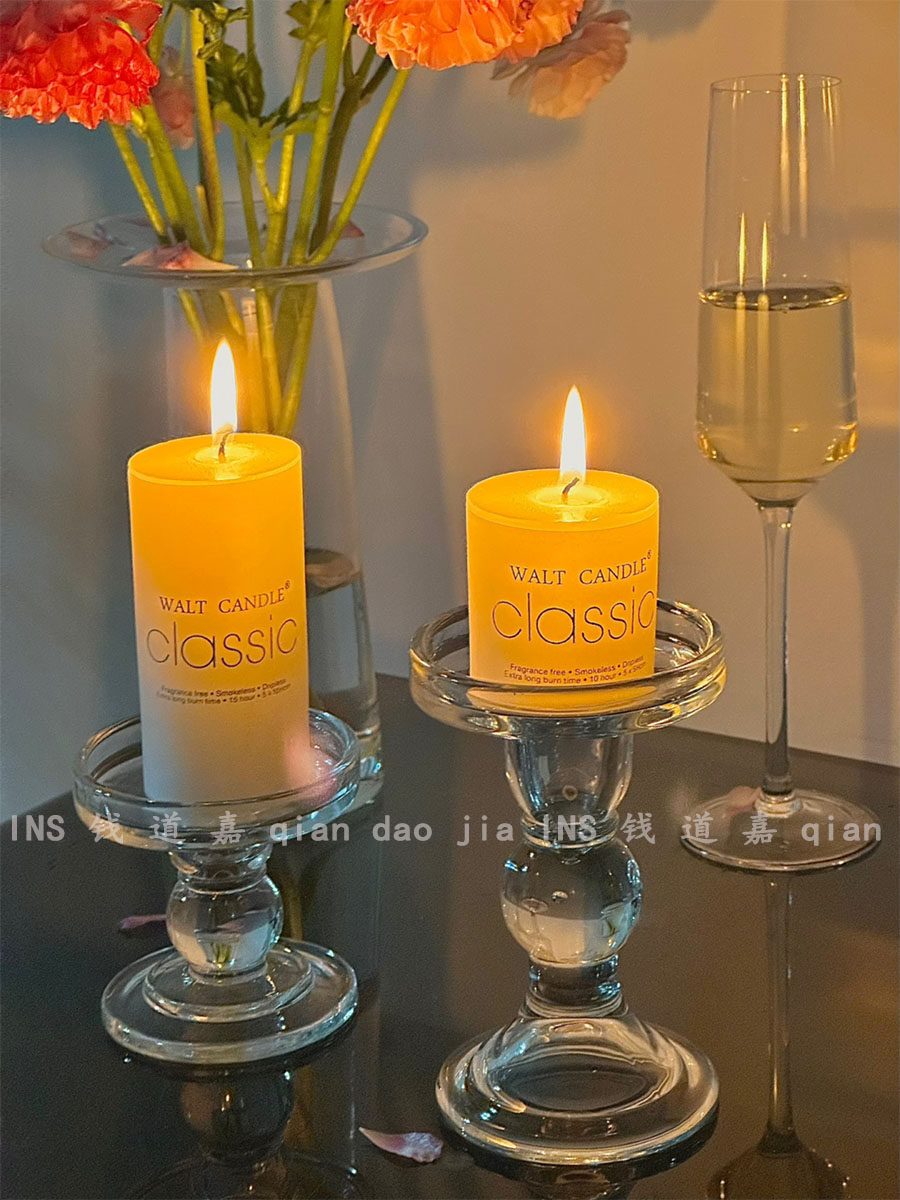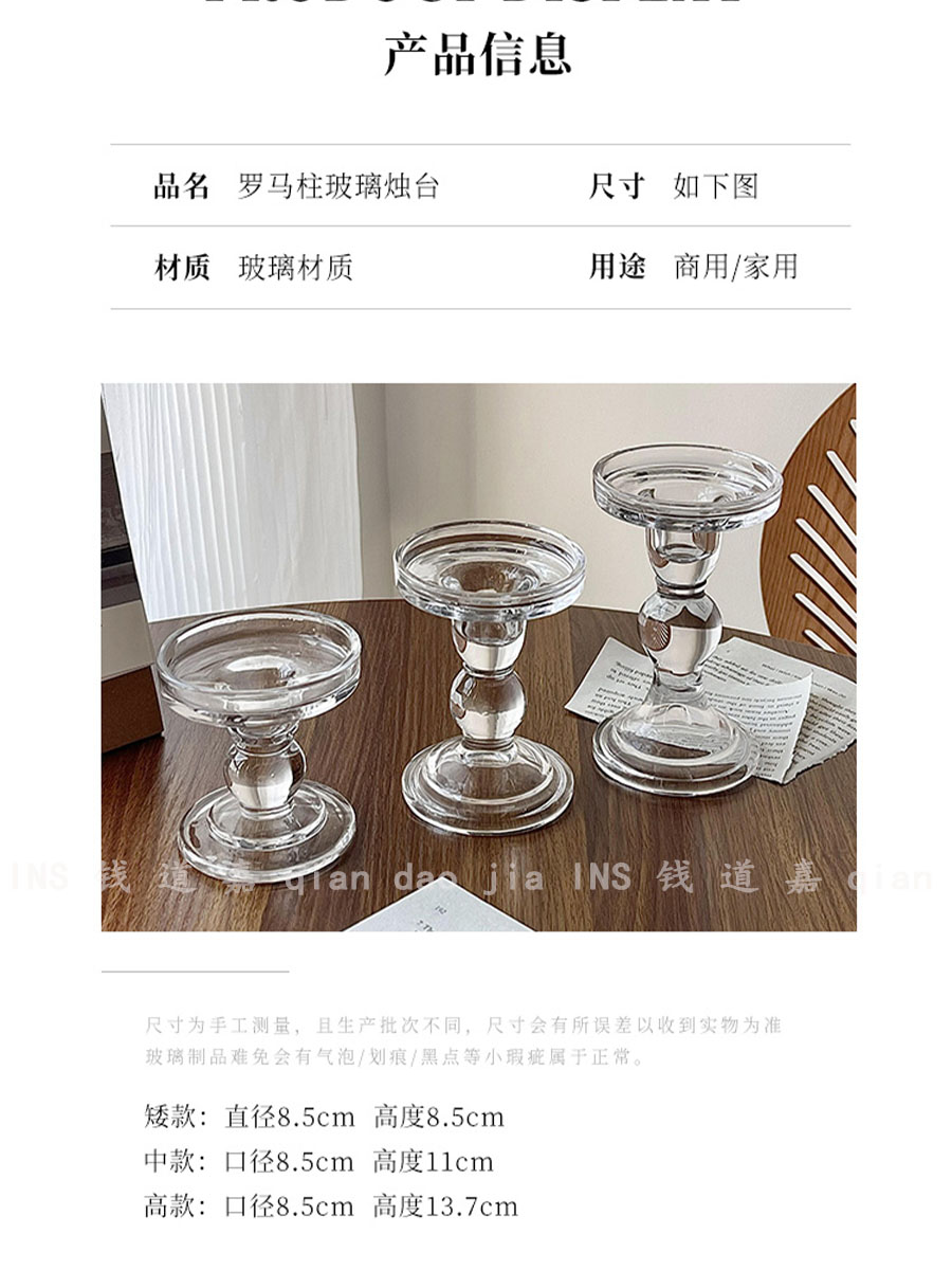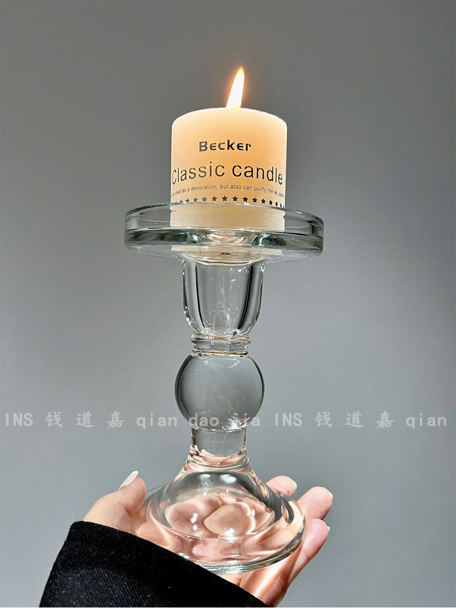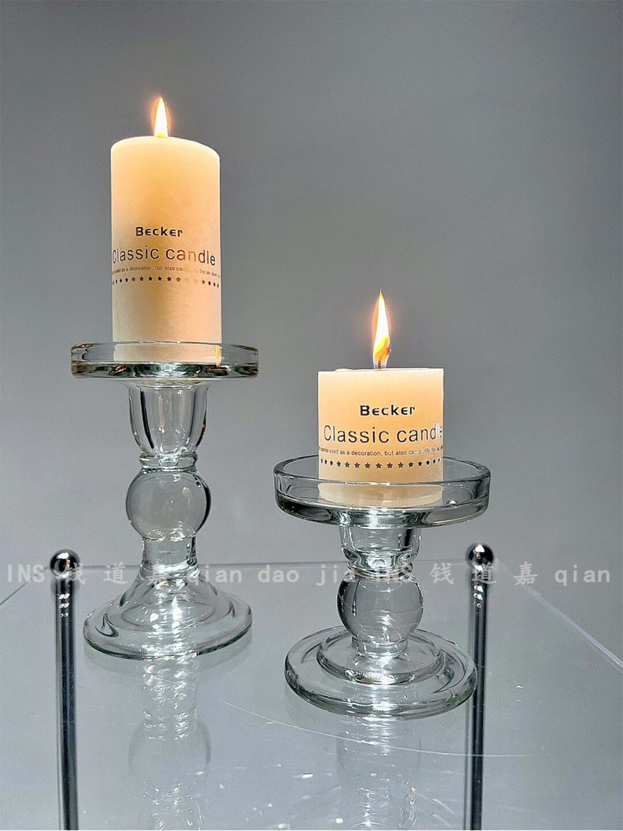 Ins 로마 칼럼 유리 캔들 홀더 투명한 크리스탈 빈티지 장식 로맨틱 촛불 저녁 식사 사진 소품