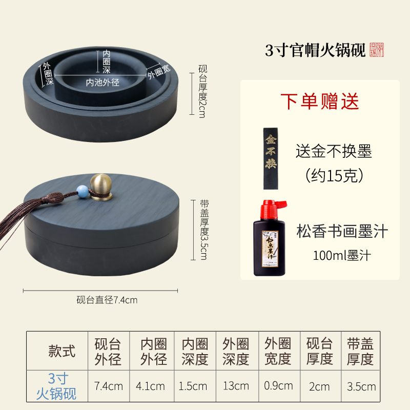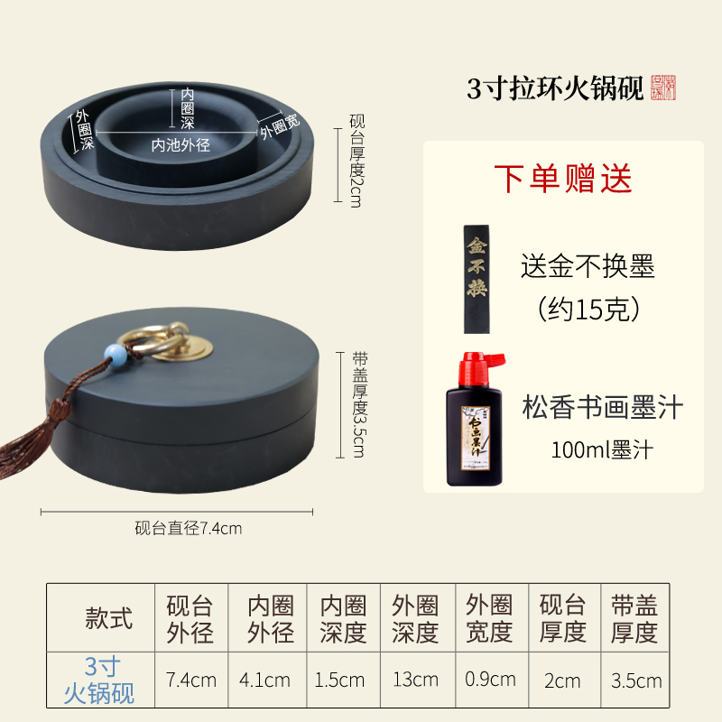 • 3inch 당김 고리가 있는 전골 벼루(잉크 스트립과 함께 제공) 술
