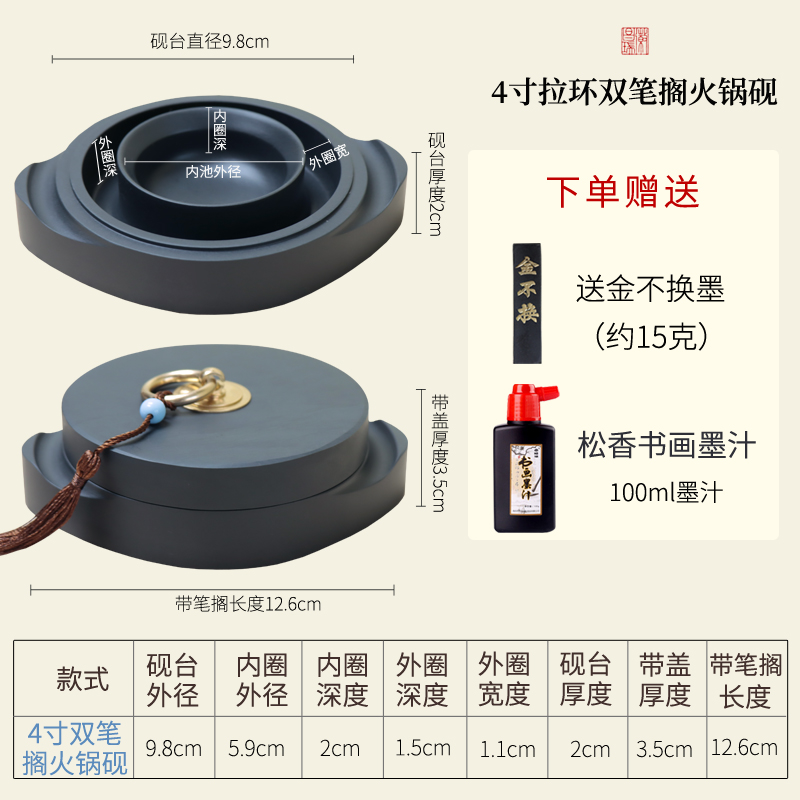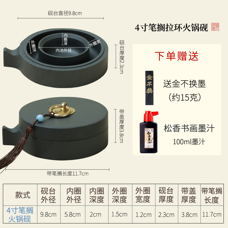 • 4inch 당김 고리가 있는 전골 벼루(잉크 스트립과 함께 제공) 술