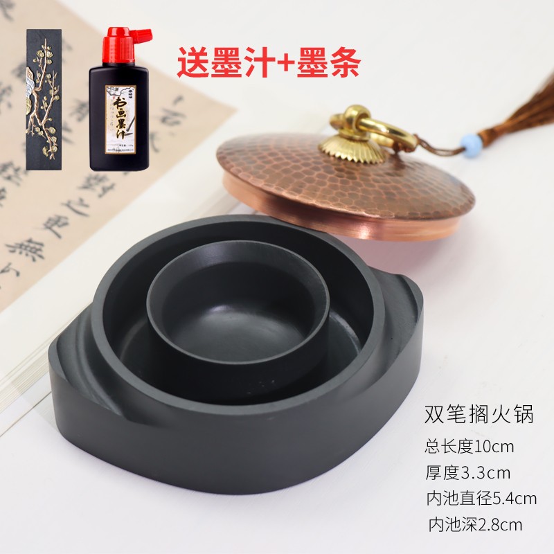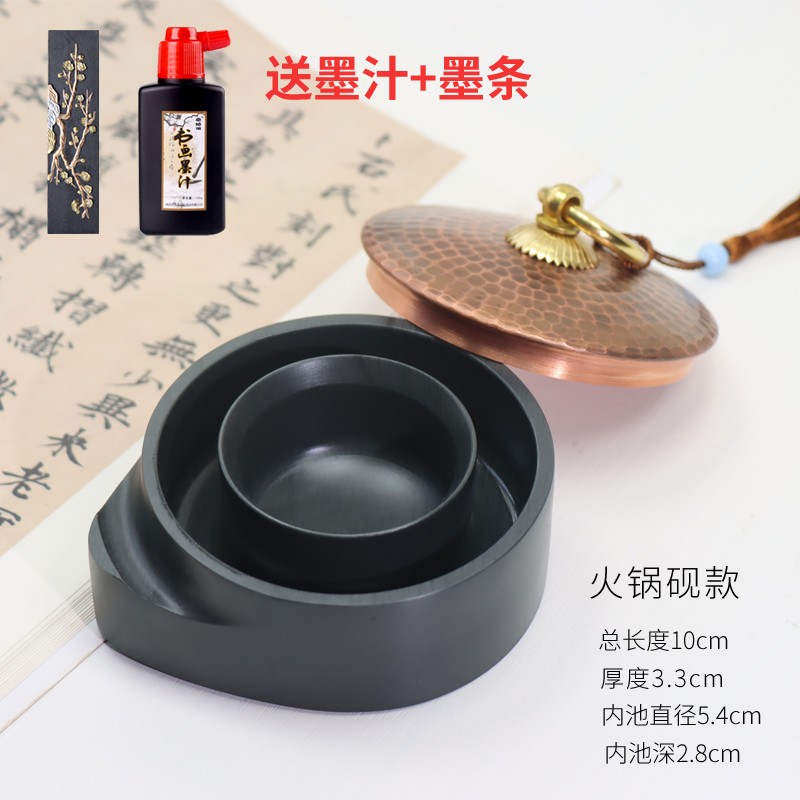 천연 오리지널 스톤 핫 팟 잉크 스톤 더블 서클 장기 보습 잉크가 아닌 커버가있는 연구의 4 가지 보물 그녀는 Inkstone 초보자 서예스토어 가기