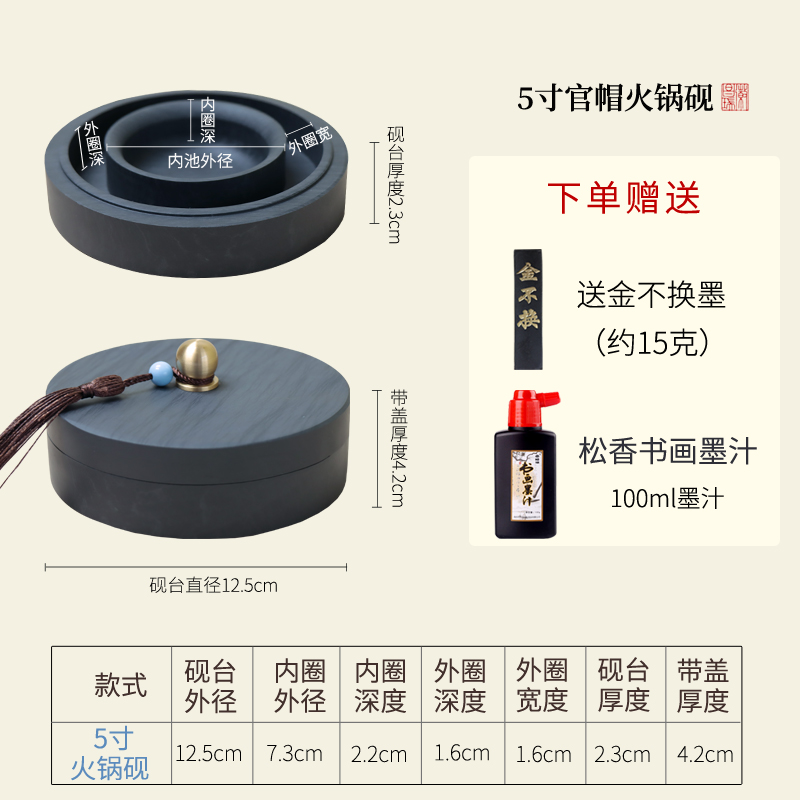 • 5inch 당김 고리가 있는 전골 벼루(잉크 스트립과 함께 제공) 술