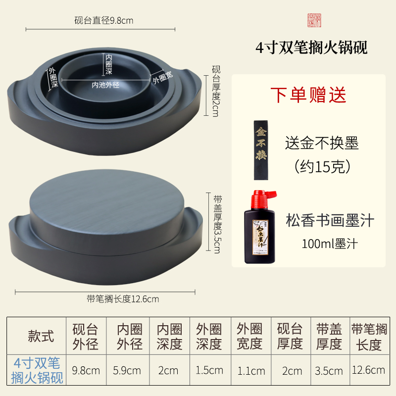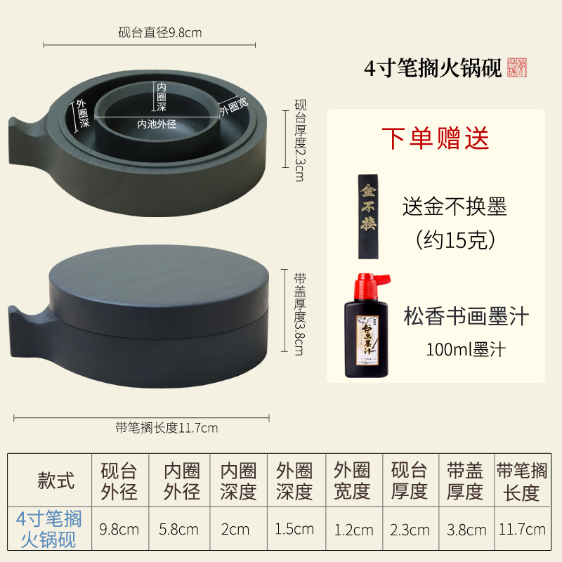• 4inch 전골 벼루(잉크와 잉크 스트립 포함)