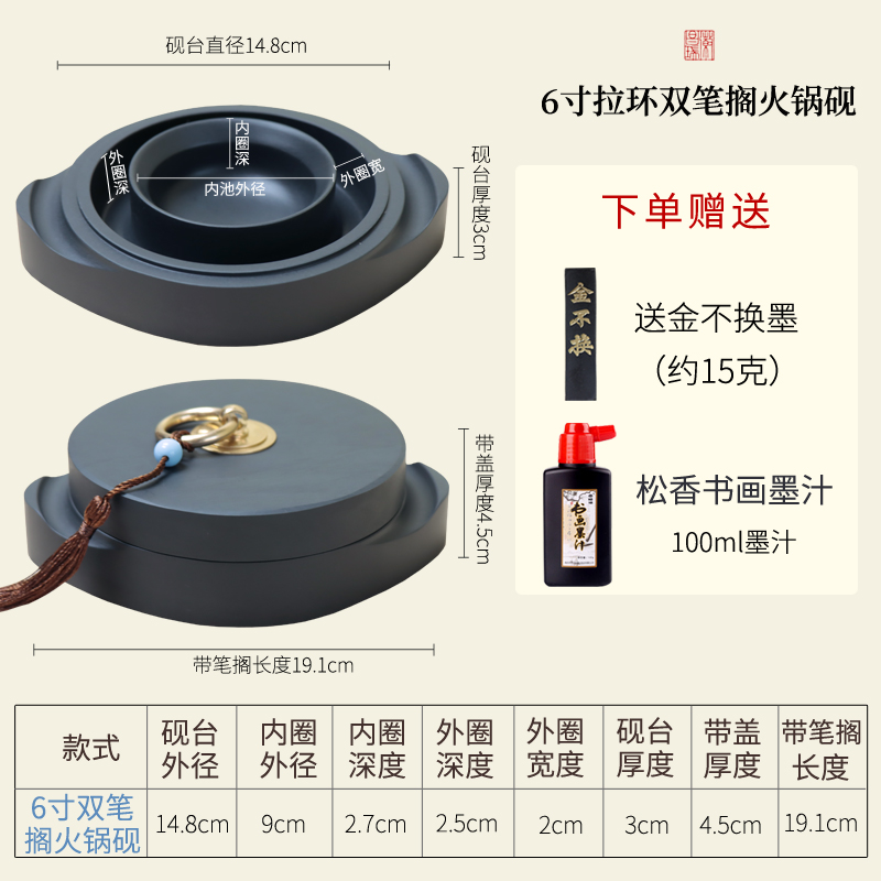 • 6inch 당김 고리가 있는 전골 벼루(잉크 스트립과 함께 제공) 술