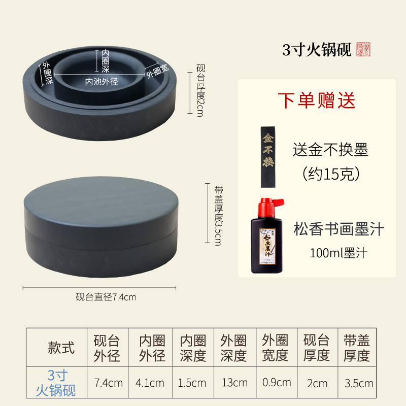 • 3inch 전골 벼루(잉크와 잉크 스트립 포함)