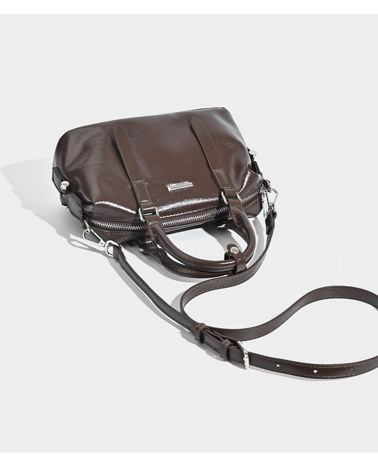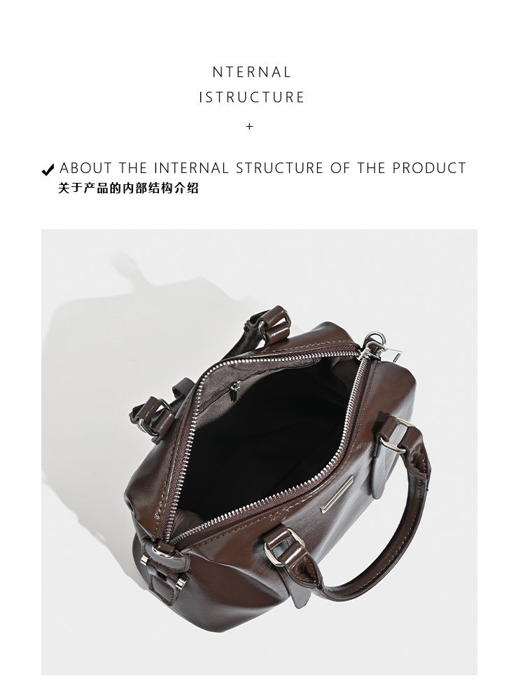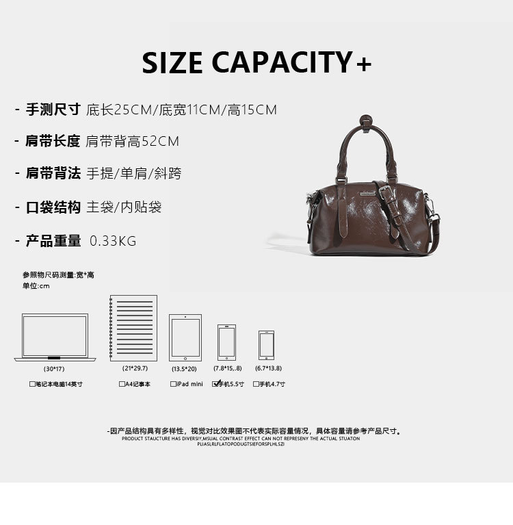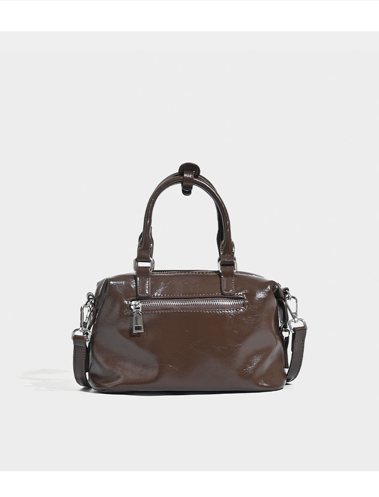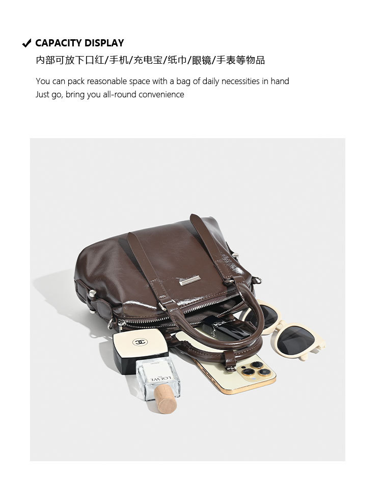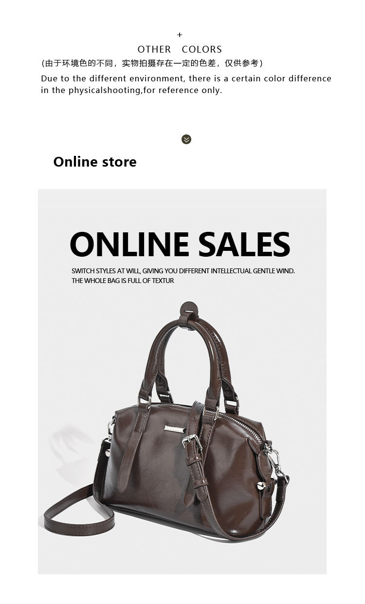 2025 봄과 여름 새로운 여성 가방 오일 왁스 가죽 보스턴 베개 가방 레트로 캐주얼 올 매치 휴대용 크로스 바디 백스토어 가기