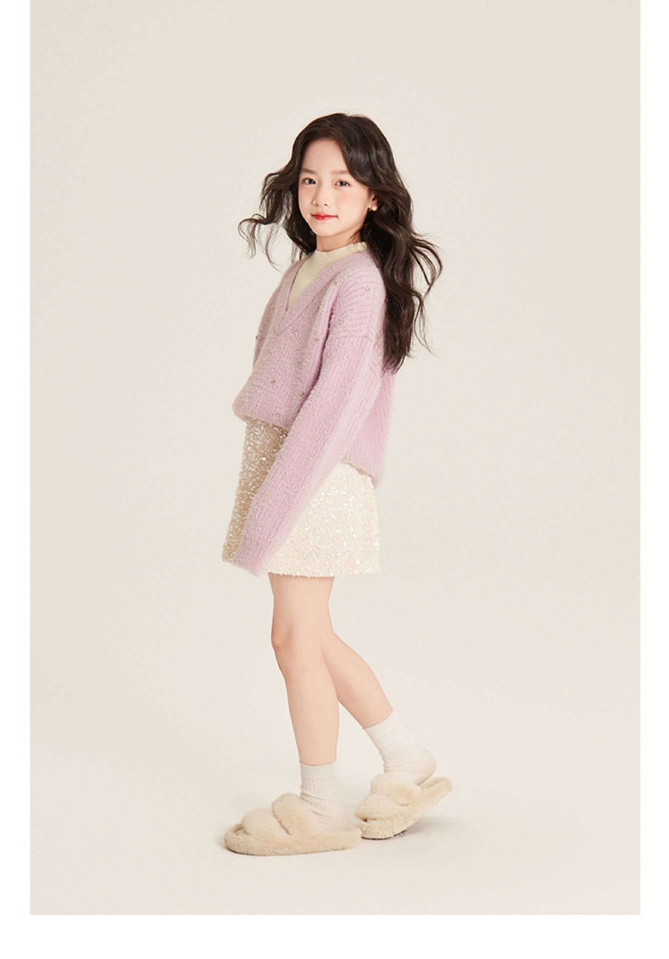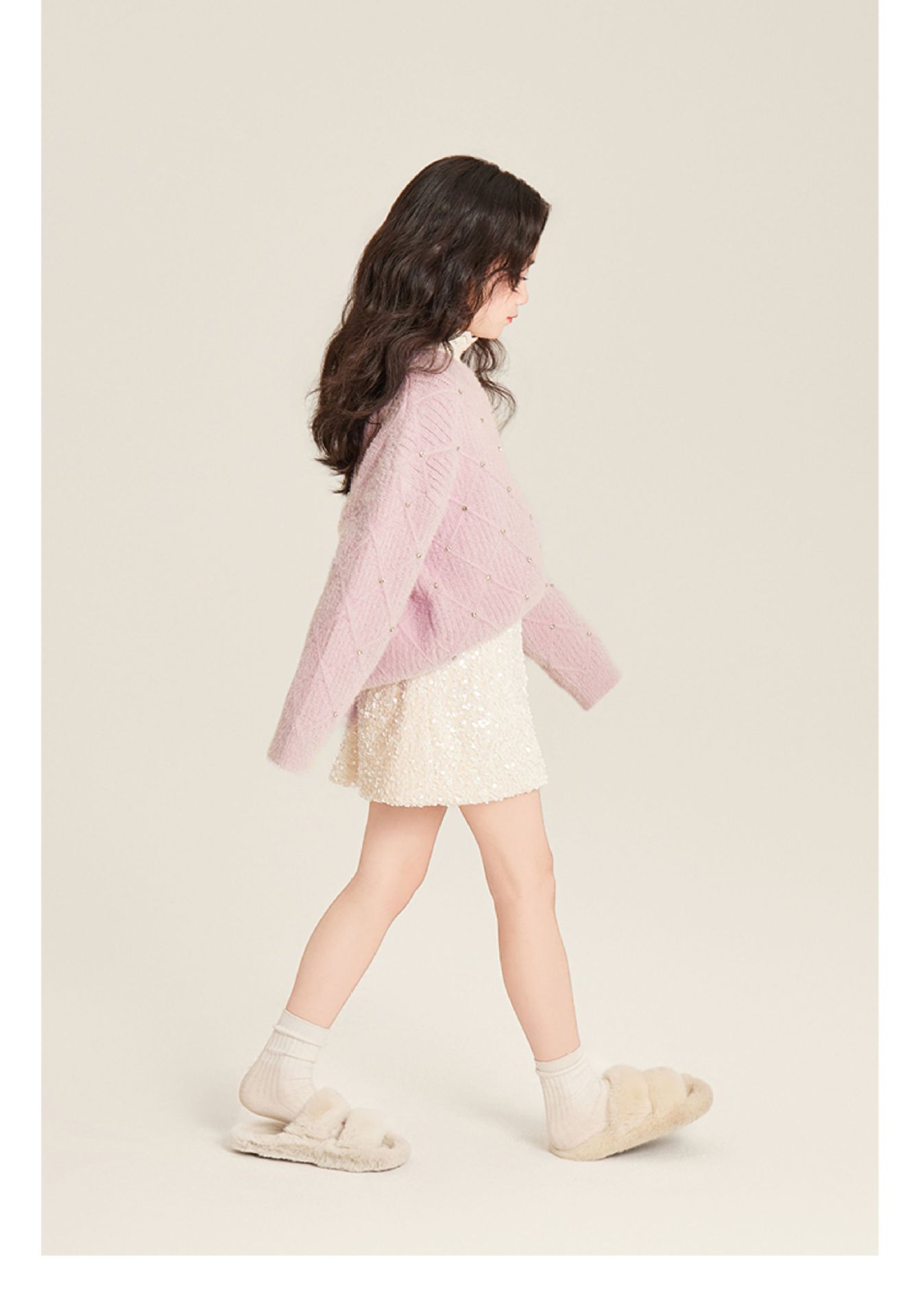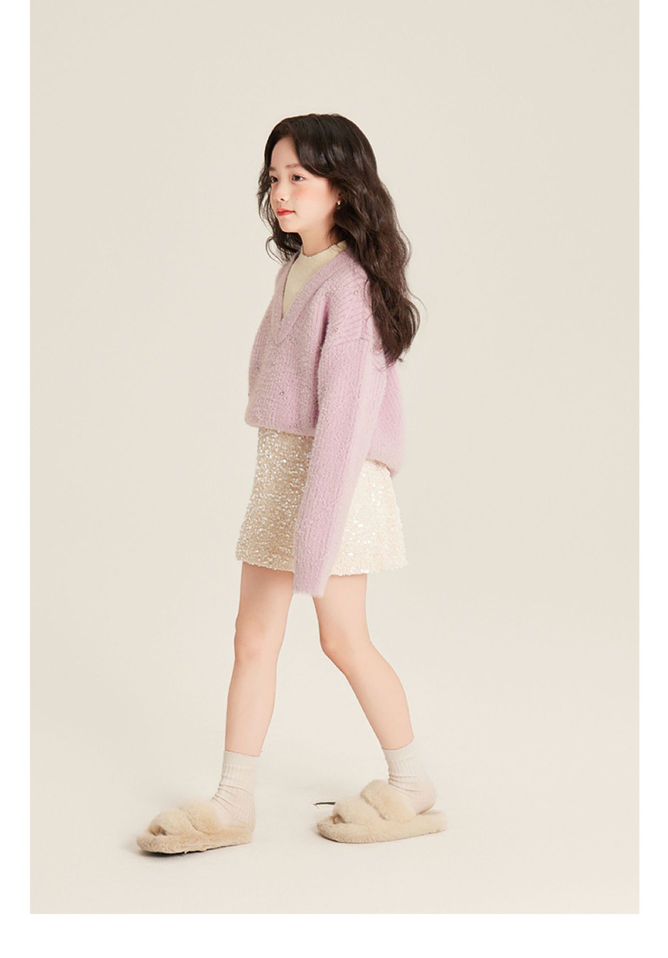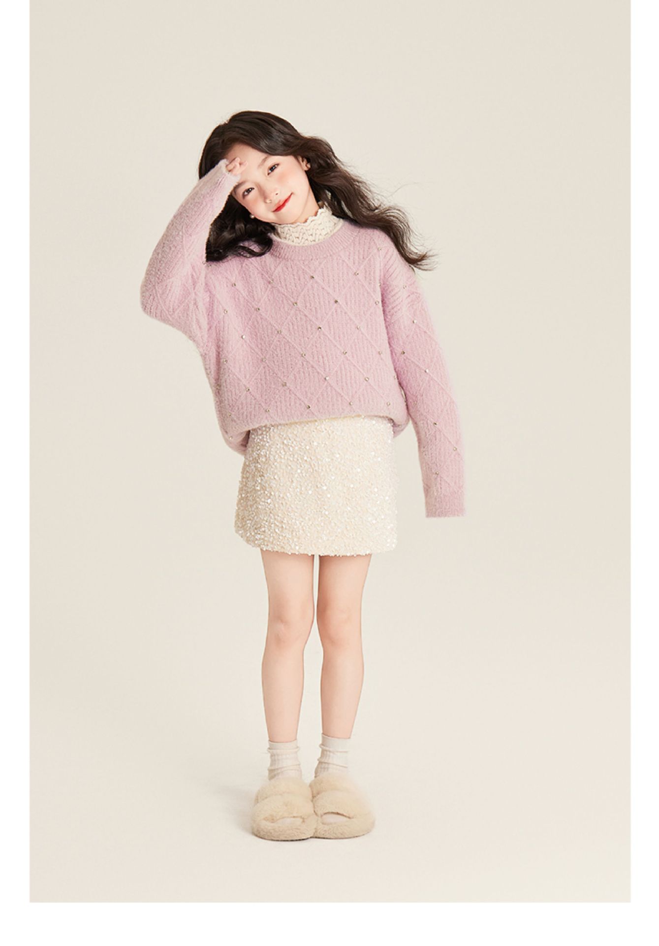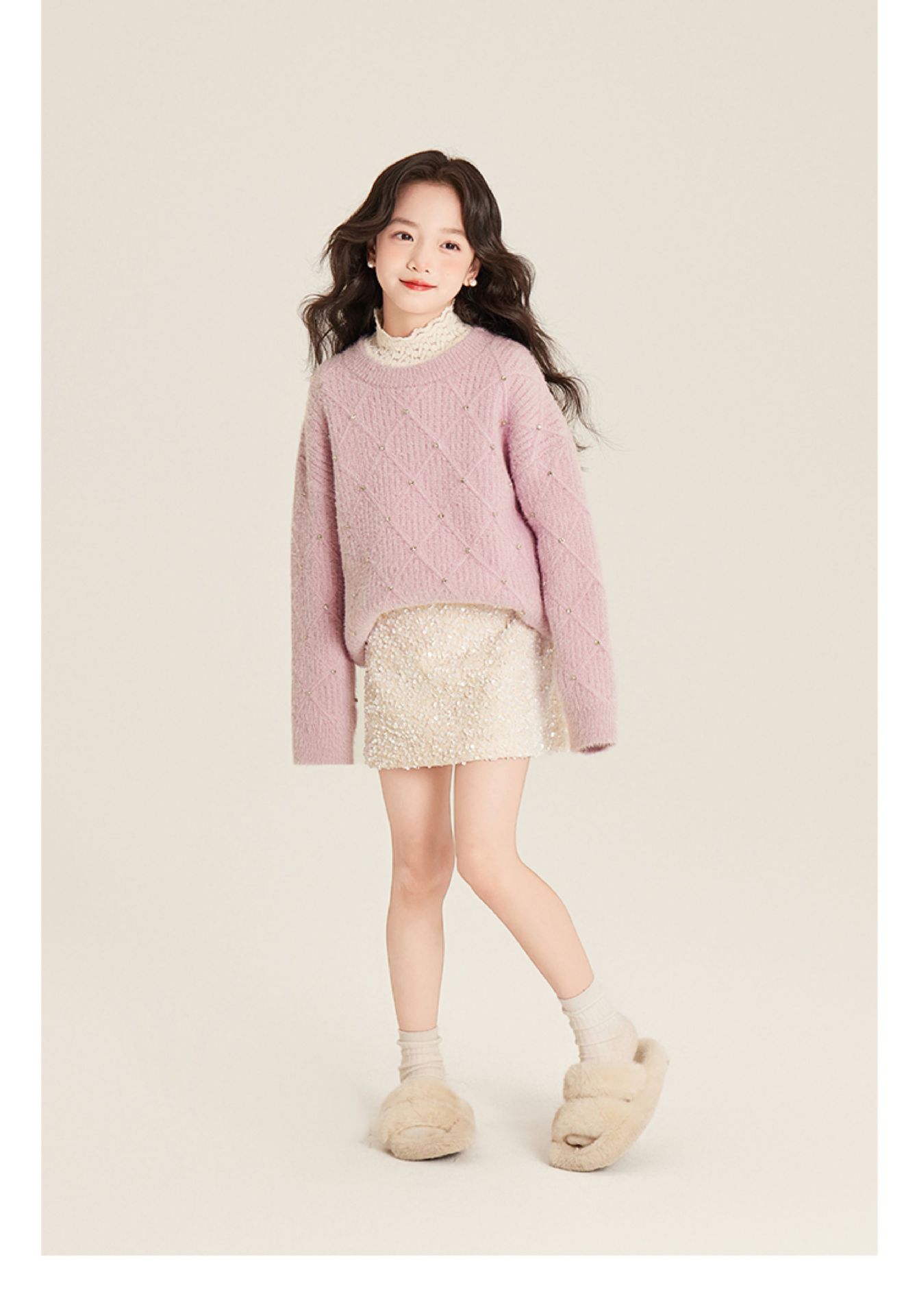 Amybaby Girls 'Top Winter 2024 새로운 캐주얼 소프트 왁스 젠틀 스타일 크루 넥 터틀넥 페이크 투피스 스웨터