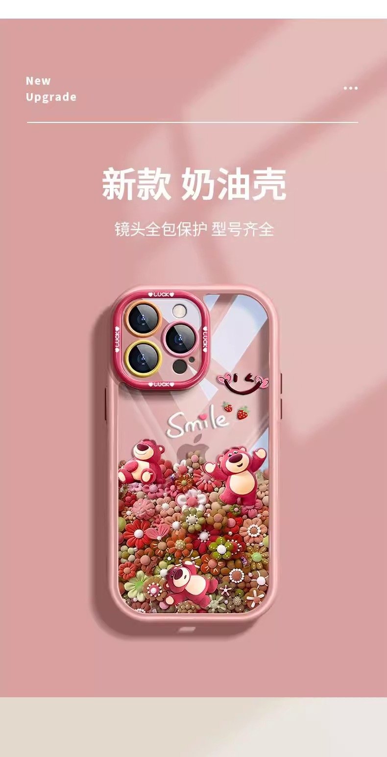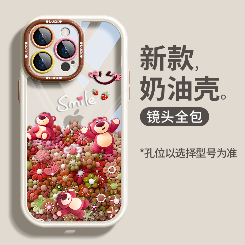 애플 16promax 휴대 전화 케이스 iphone15 딸기 곰 13 크림 깃털 원사 12 화웨이 P70PRO스토어 가기