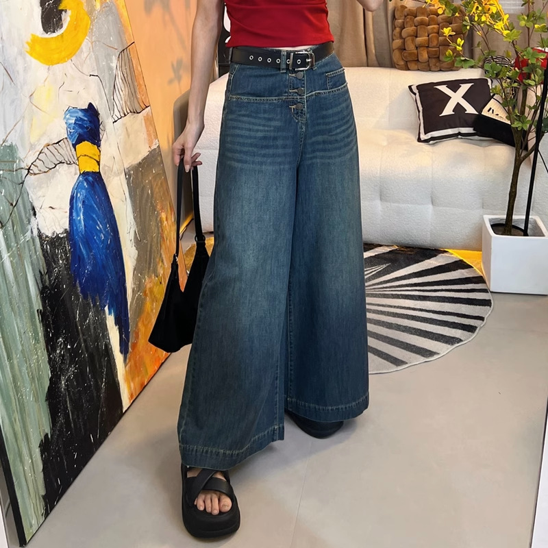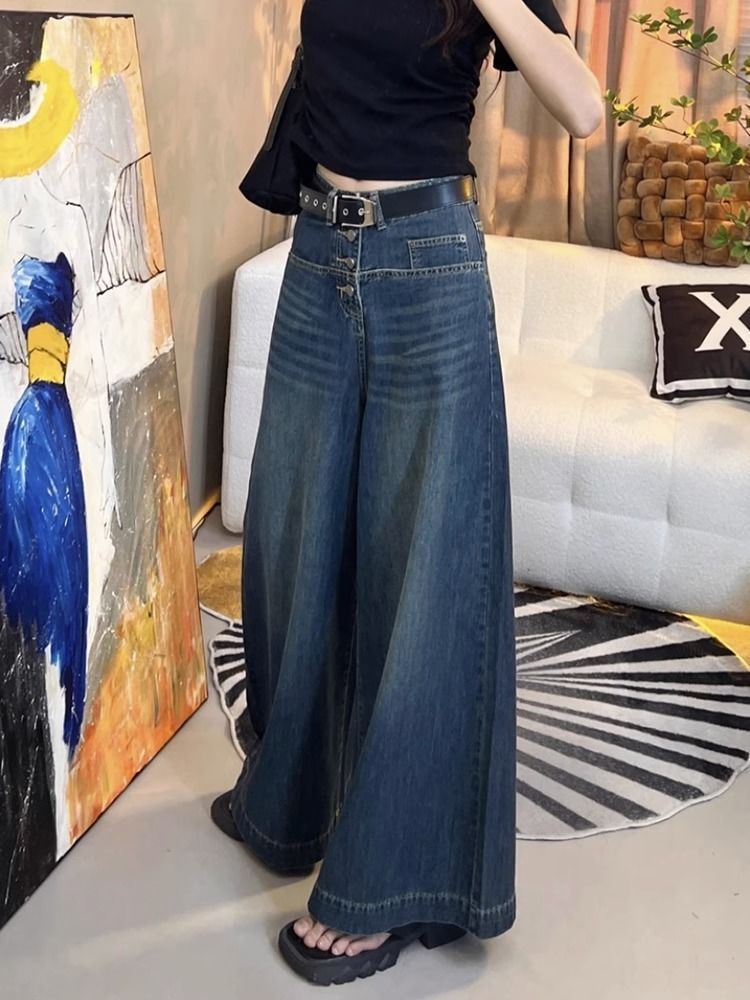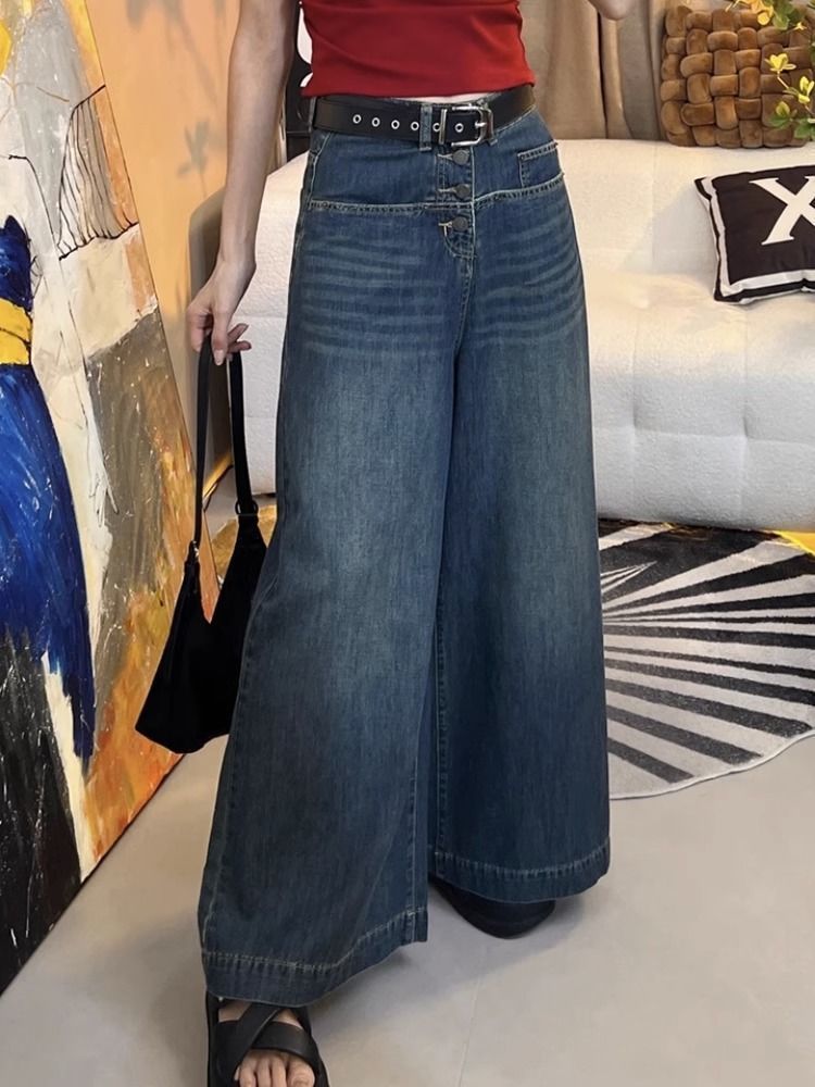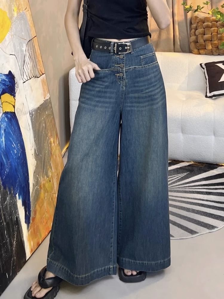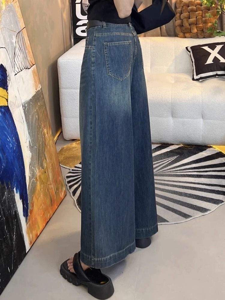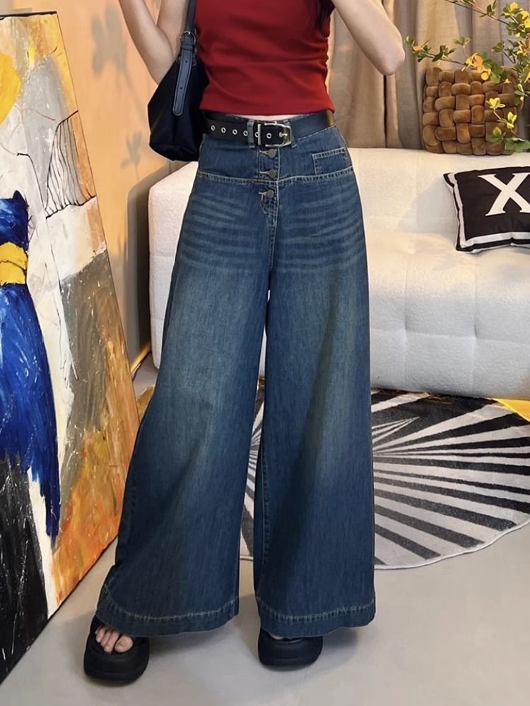 큰 스윙 스트레이트 다리 넓은 다리 청바지 여성의 2025 봄 새로운 높은 허리 느슨한 슬리밍 플러스 사이즈 바지 작은 남성스토어 가기