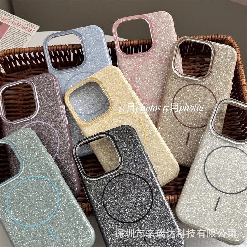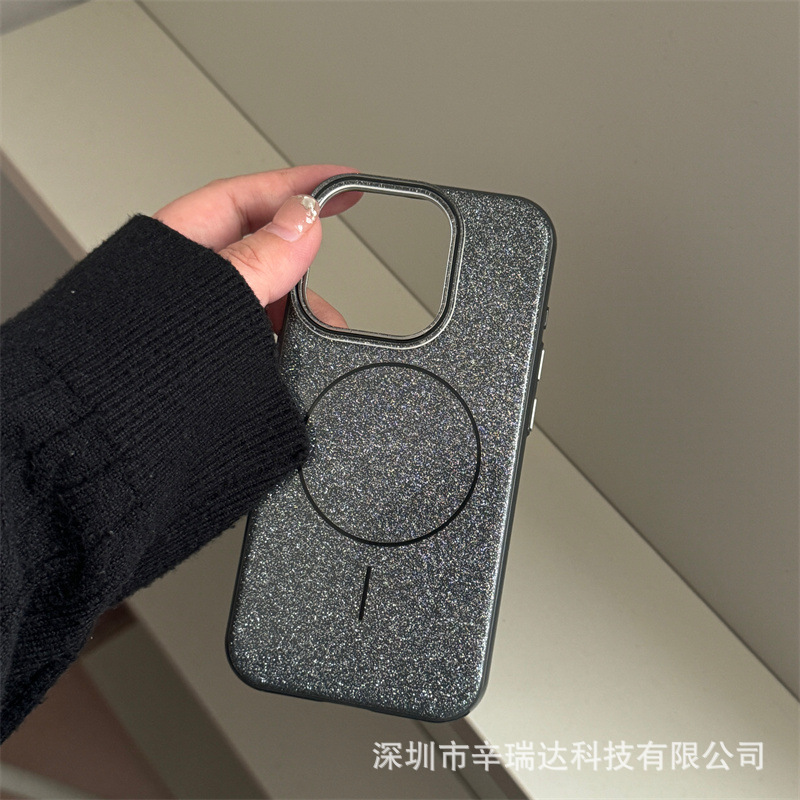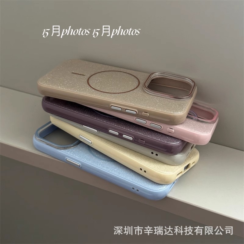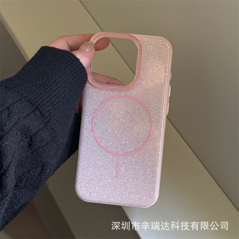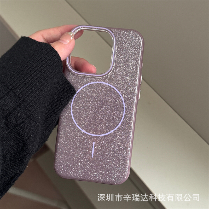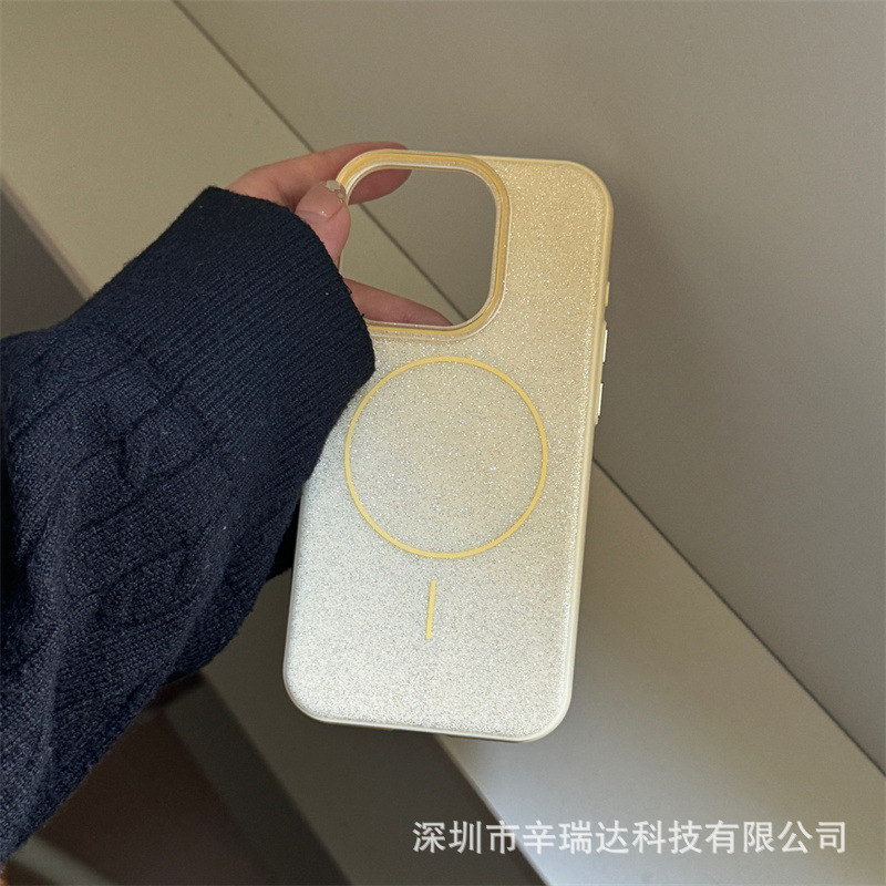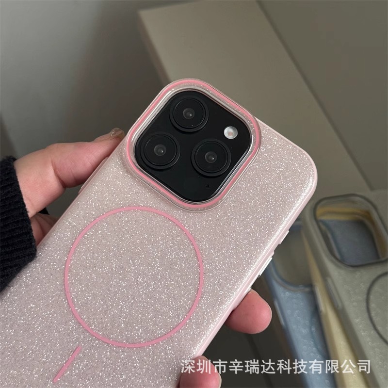 iPhone17ProMax 휴대폰 케이스에 적합, 공식 IMD 반짝이 파우더 미세 원형 자석 흡착 애플16 낙하 방지 보호 케이스