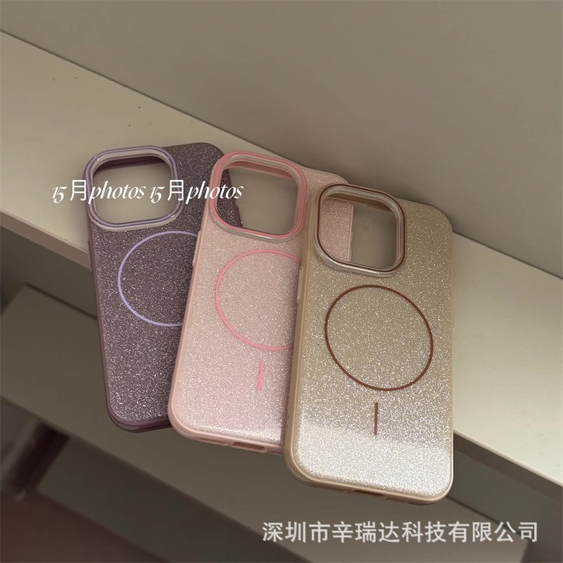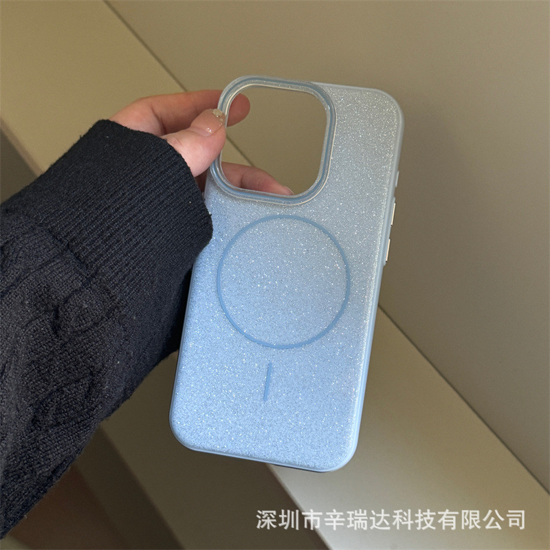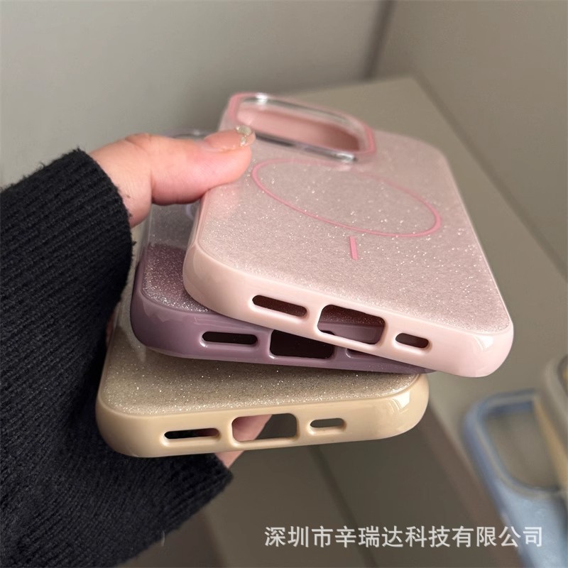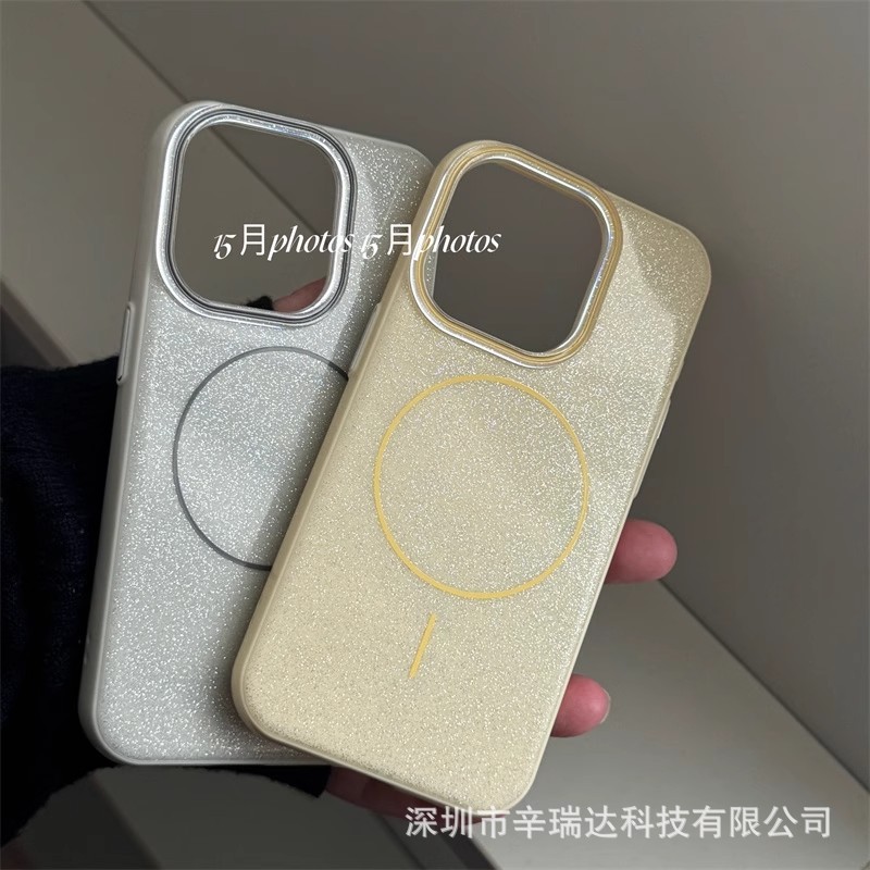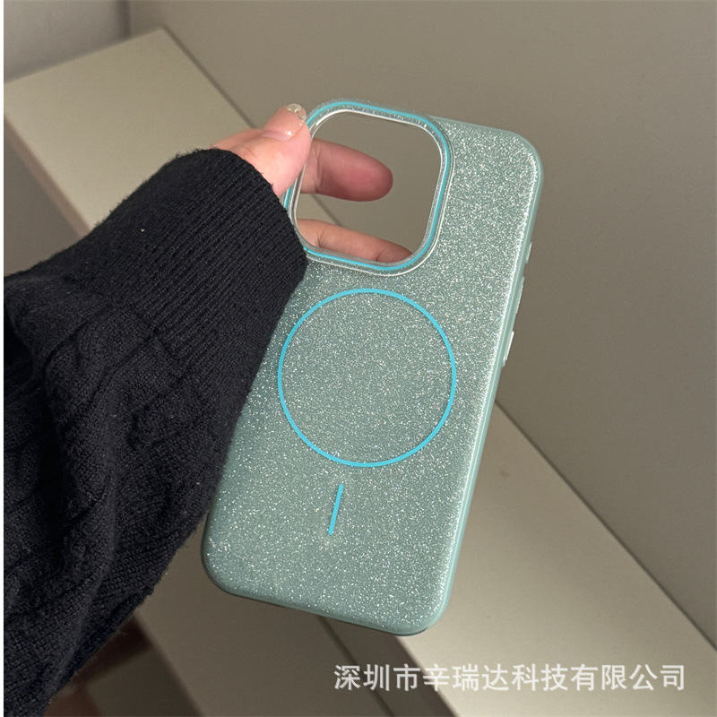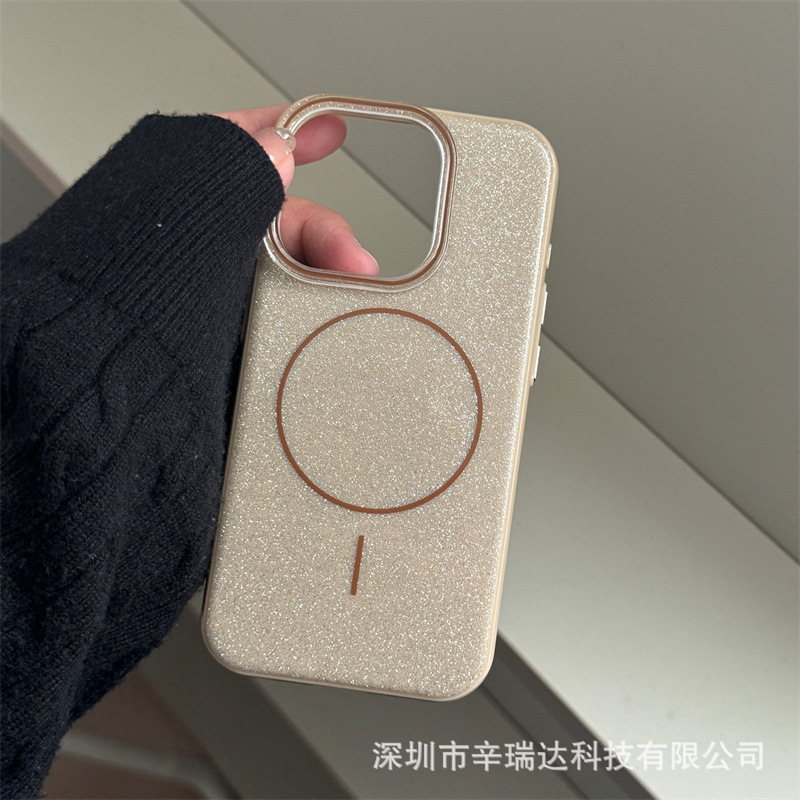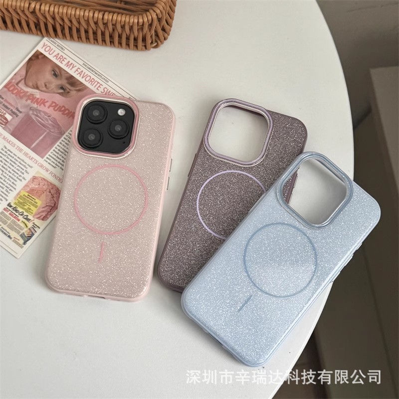 iPhone17ProMax 휴대폰 케이스에 적합, 공식 IMD 반짝이 파우더 미세 원형 자석 흡착 애플16 낙하 방지 보호 케이스