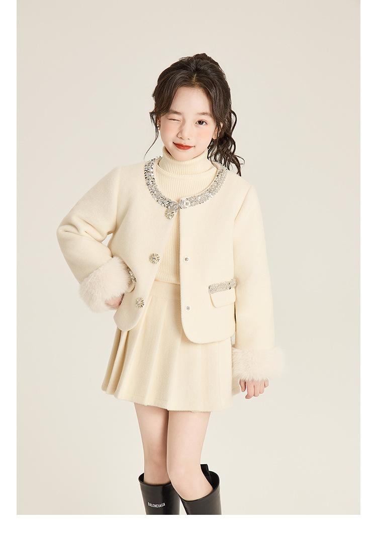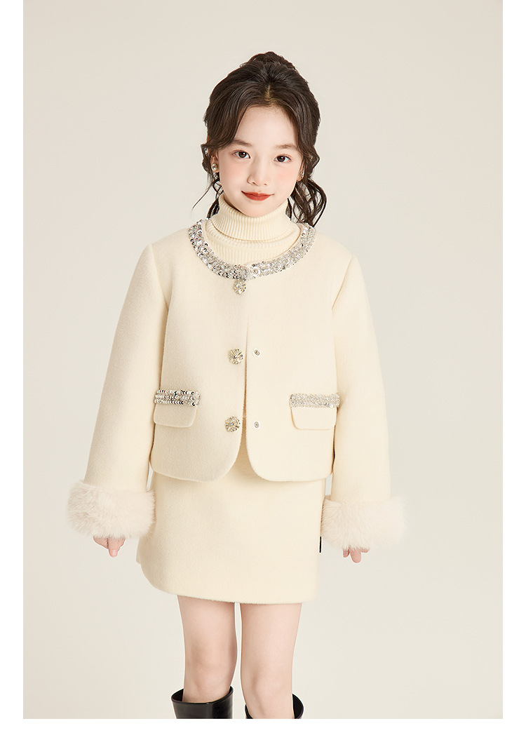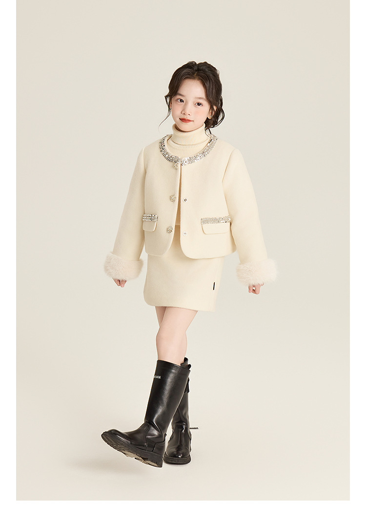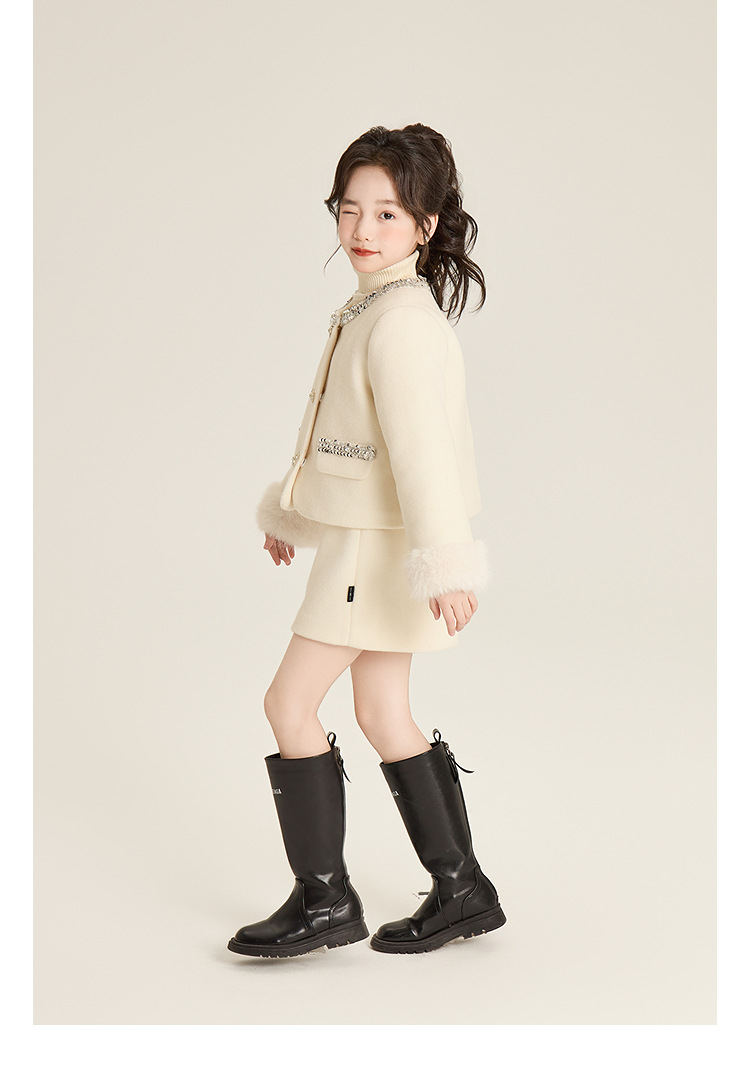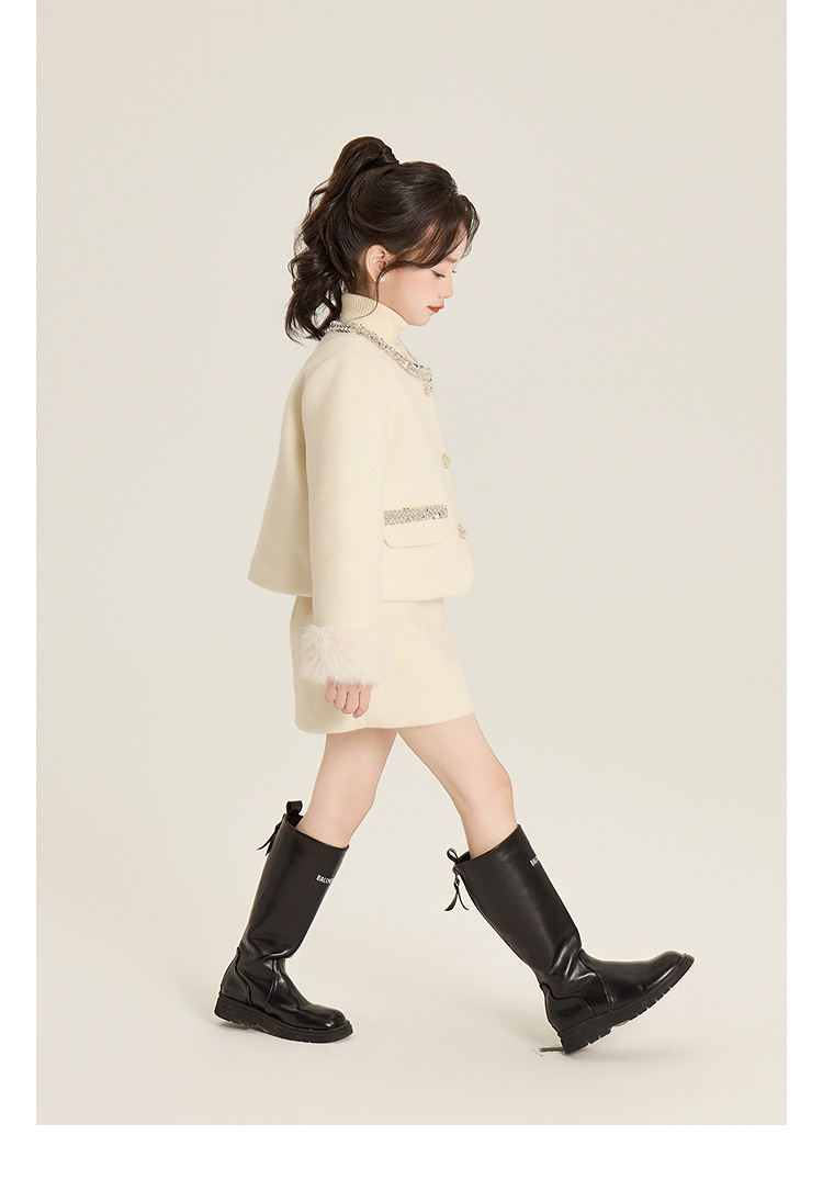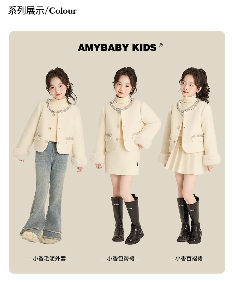 Amybaby 여자 세트 겨울 2024 새로운 한국식 샤넬 스타일 양모 코트 스커트