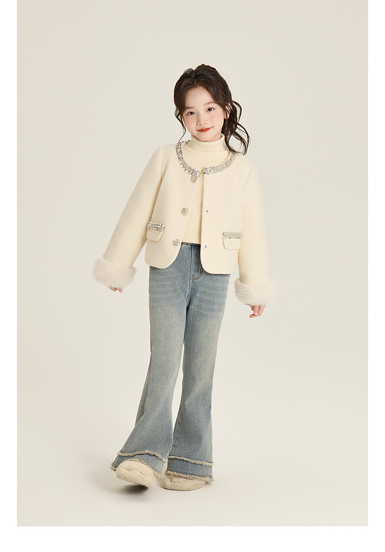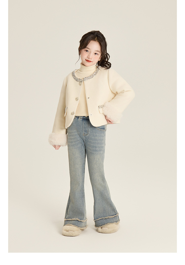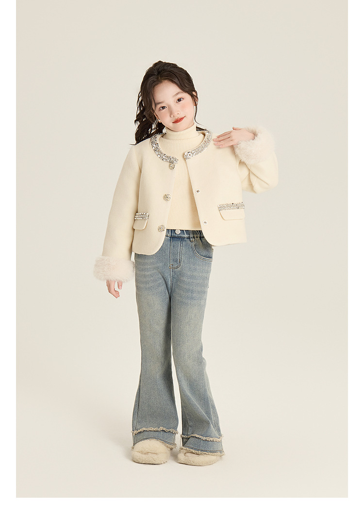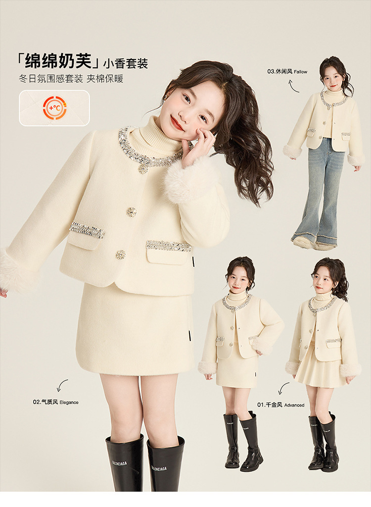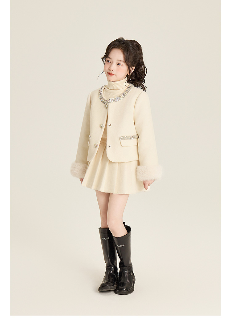 Amybaby 여자 세트 겨울 2024 새로운 한국식 샤넬 스타일 양모 코트 스커트