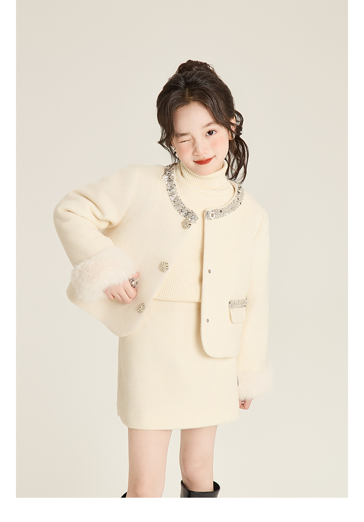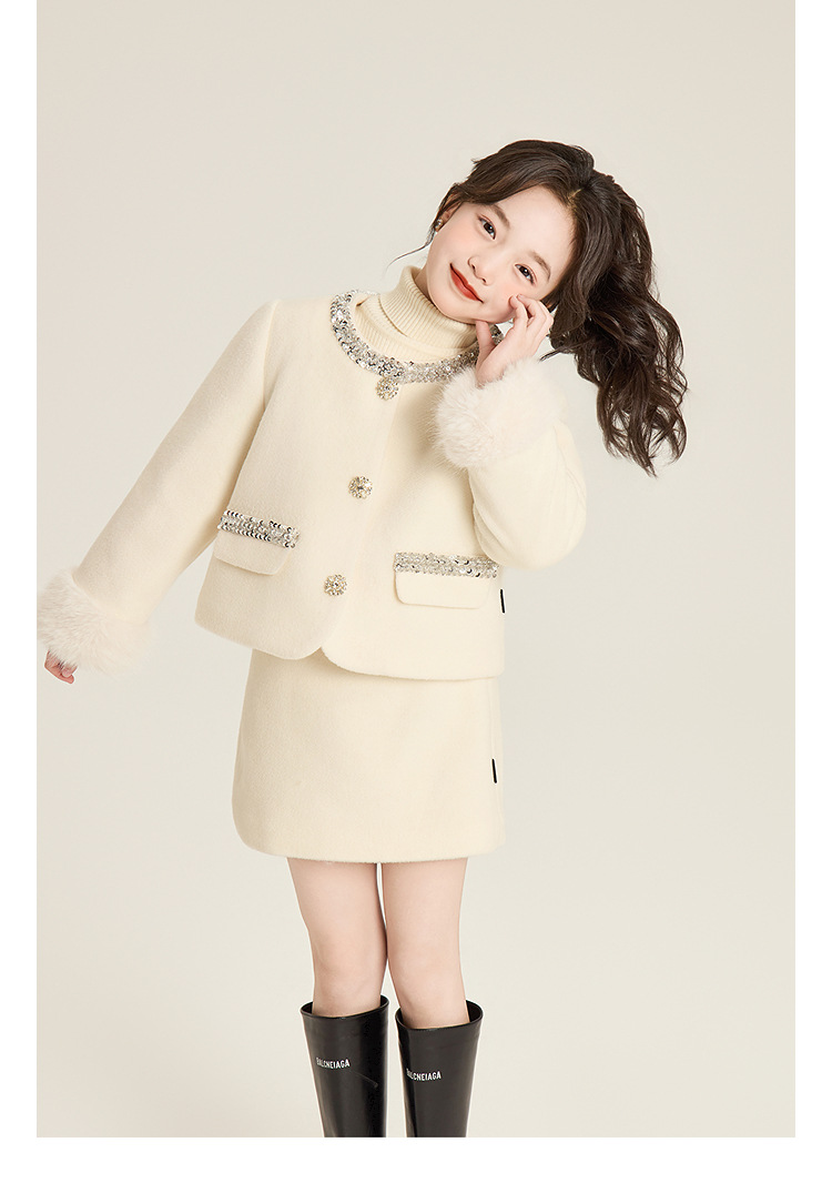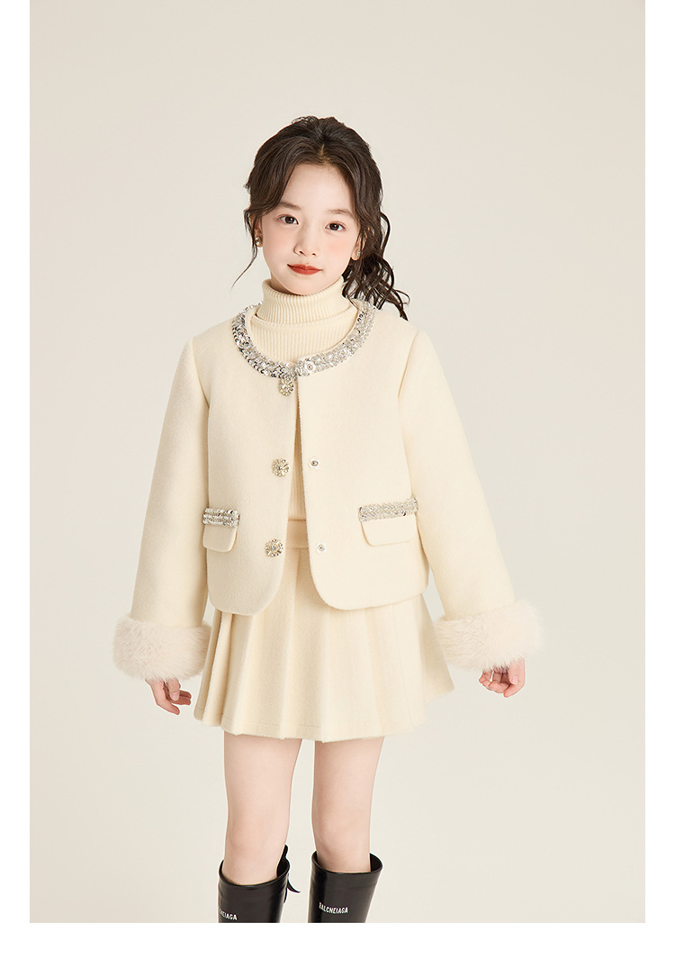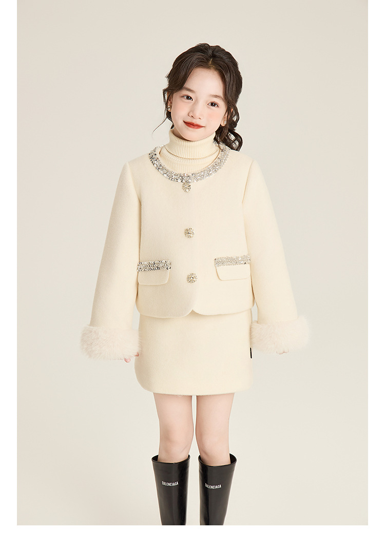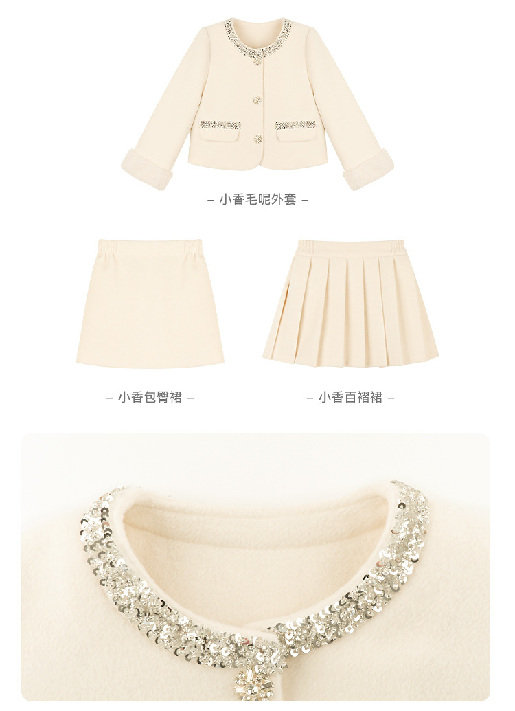 Amybaby 여자 세트 겨울 2024 새로운 한국식 샤넬 스타일 양모 코트 스커트스토어 가기