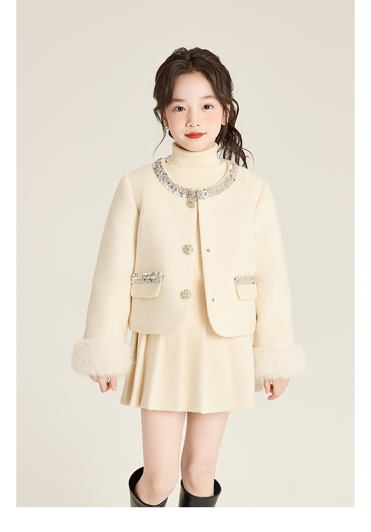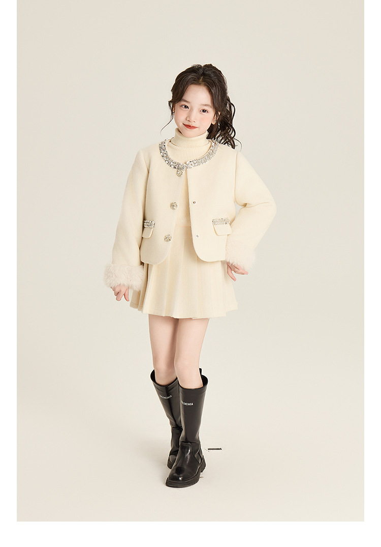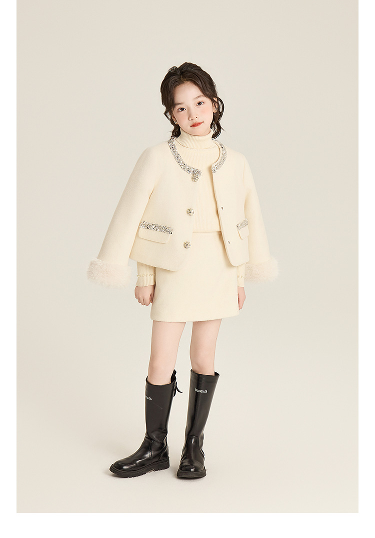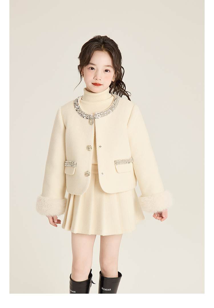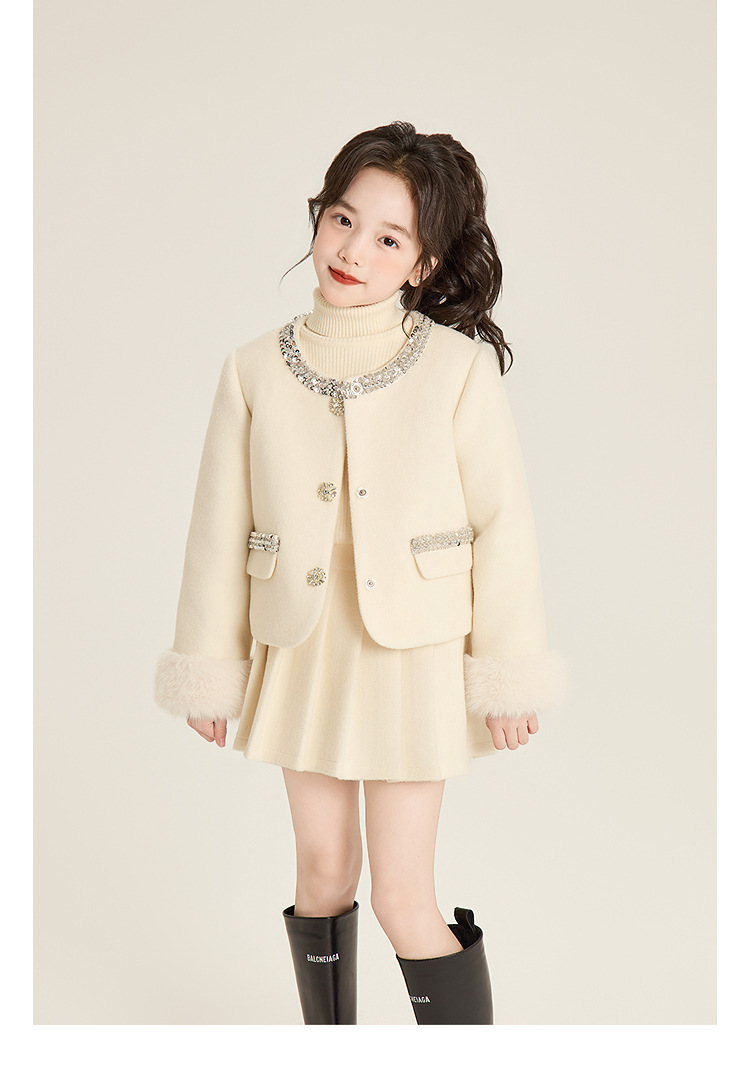 Amybaby 여자 세트 겨울 2024 새로운 한국식 샤넬 스타일 양모 코트 스커트스토어 가기