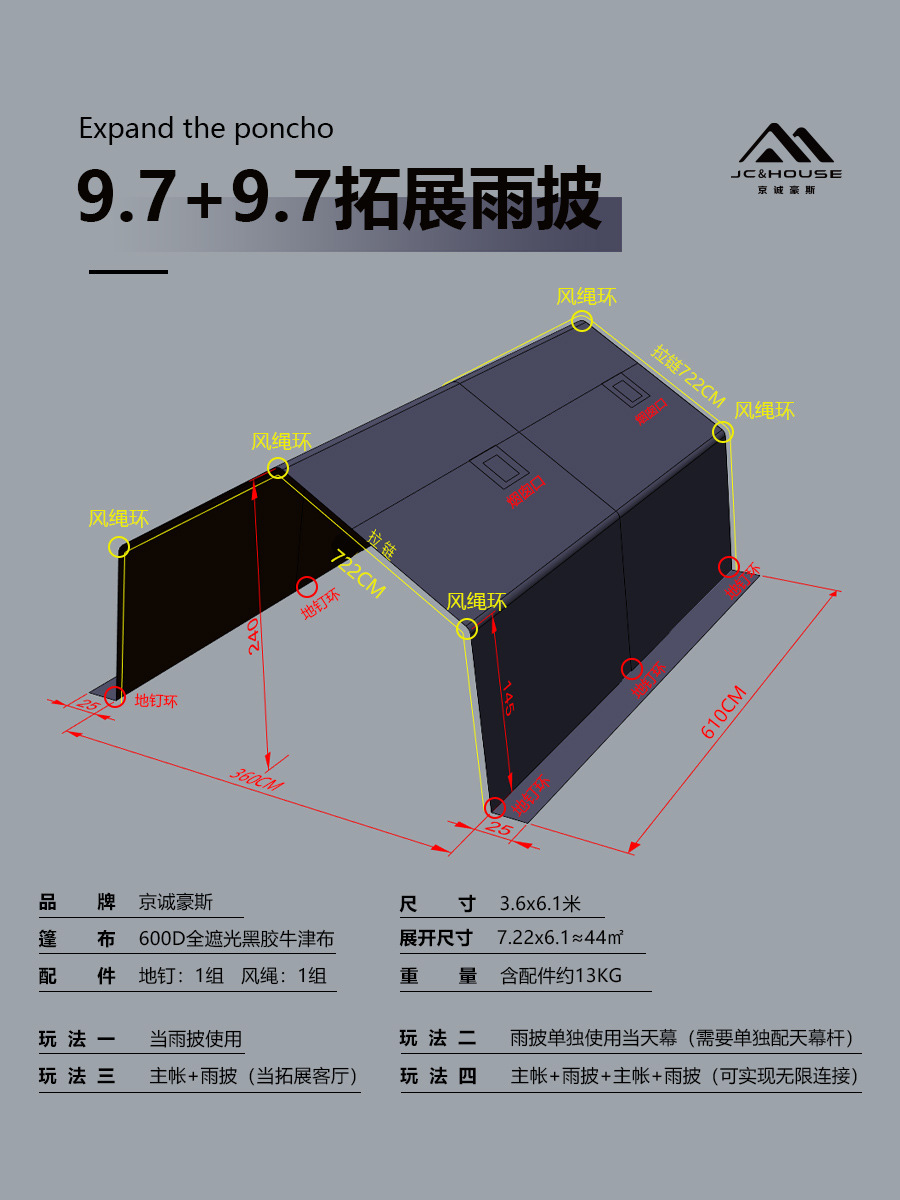 징청하우스(JcHouse) 확장형 우비형 텐트 액세서리 6.3/8/9.7/14/17.2/볼스토어 가기