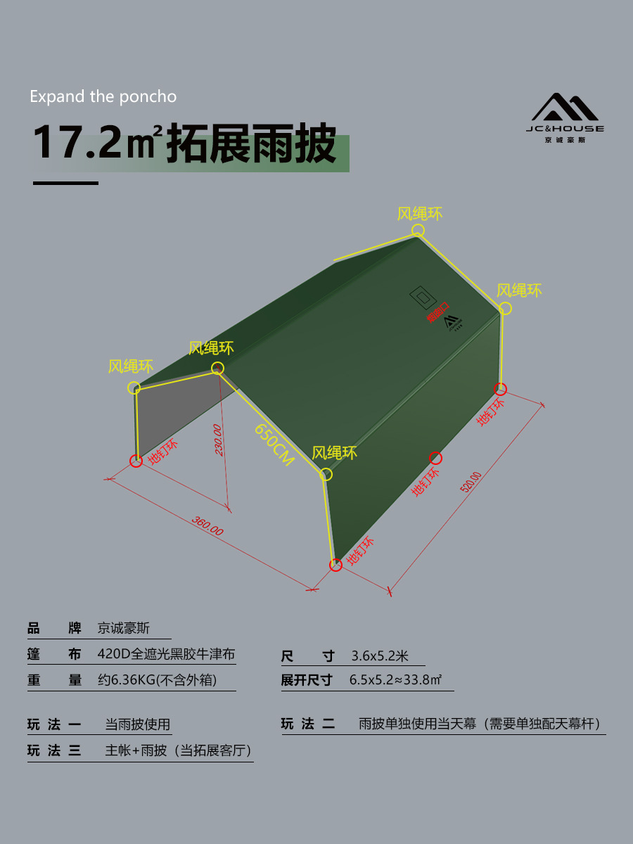 징청하우스(JcHouse) 확장형 우비형 텐트 액세서리 6.3/8/9.7/14/17.2/볼