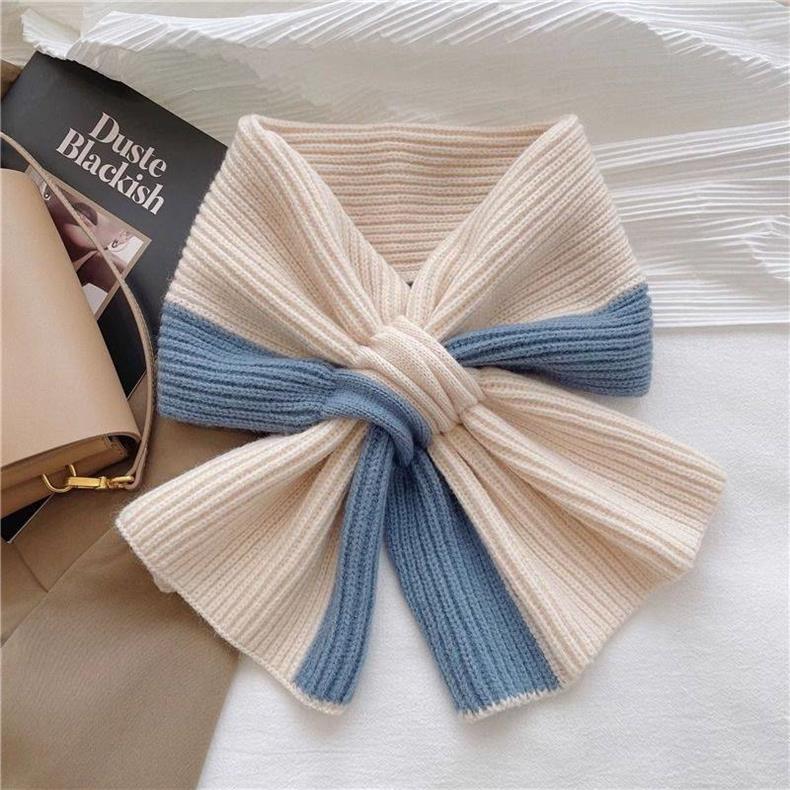 작은 스카프 짧은 여자 가을 겨울 크로스 니트 스카프 한국식 컬러 매칭 올매치 겨울 따뜻한 게으른 목 보호 인터넷 인기스토어 가기
