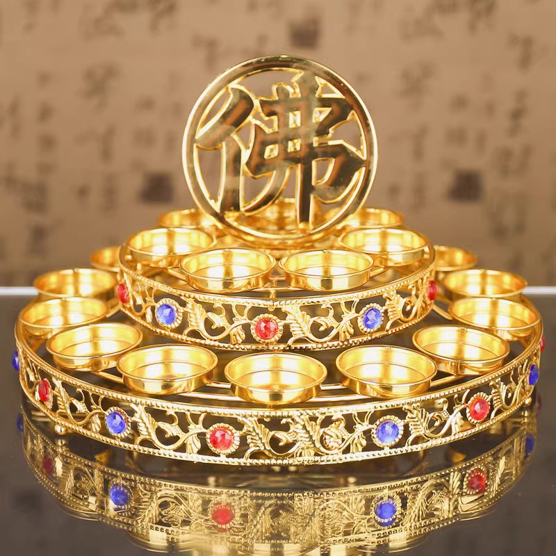 부처님 버터 램프 홀더 3 층 21 사다리꼴 촛불 램프 홀더 부처를위한 연꽃 부처님 램프를위한 큰 두부 인사말스토어 가기