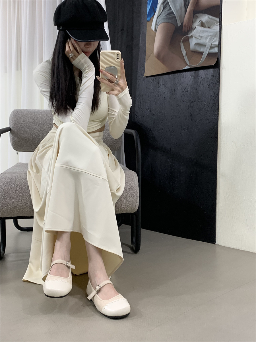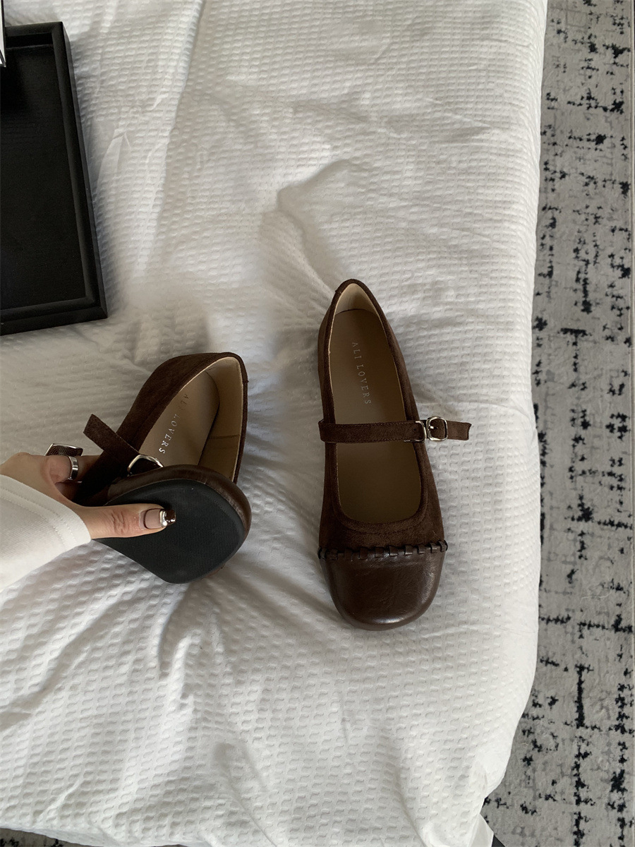 프랑스 복고풍 얕은 입 신발 여성 봄과 여름 2025 새로운 틈새 신발 메리 제인 소프트 가죽 플랫 신발스토어 가기