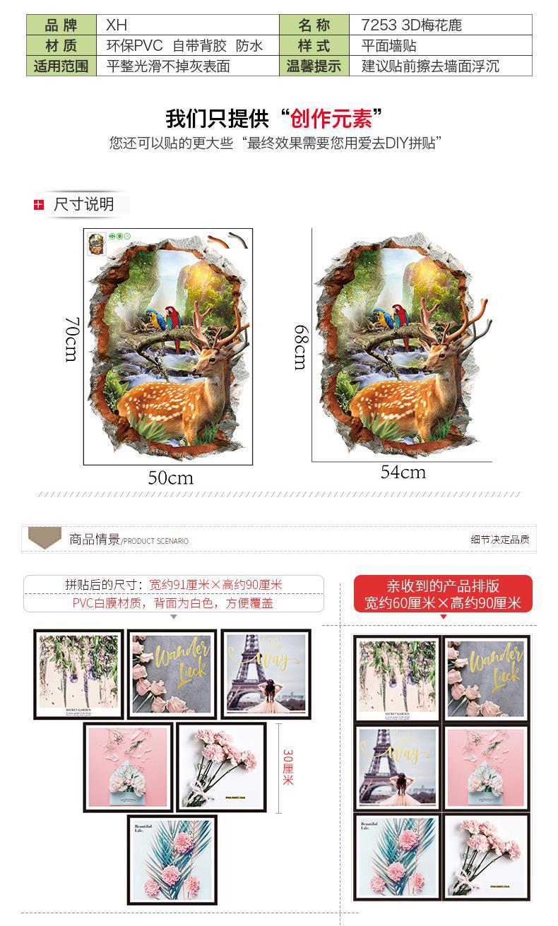 3D 스테레오 도어 스티커 문 커버 미운 구멍 스티커 창조적 인 침실 문 장식 스티커 룸 레이아웃 벽 스티커스토어 가기