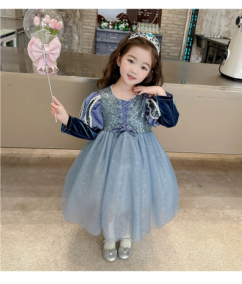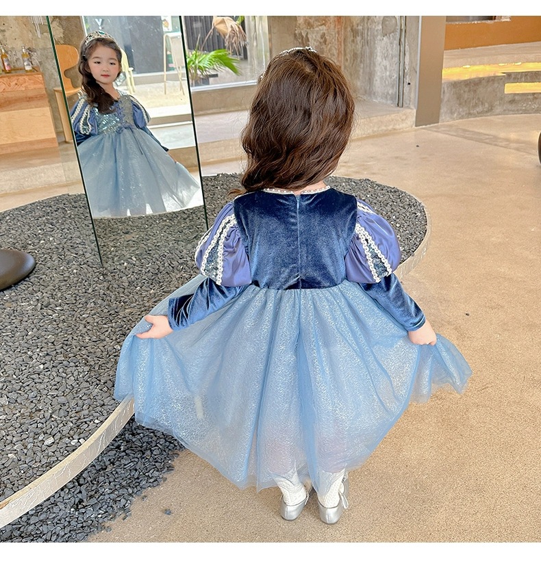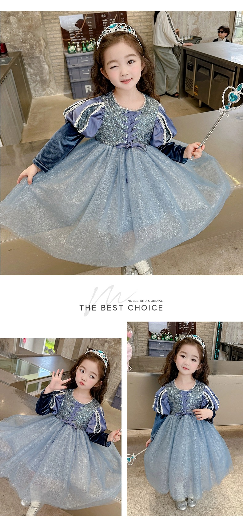 여자 원피스 가을 슈퍼 페어리 메쉬 원피스 2024 새로운 어린이 엘사 공주 원피스 여자 세련된 원피스스토어 가기