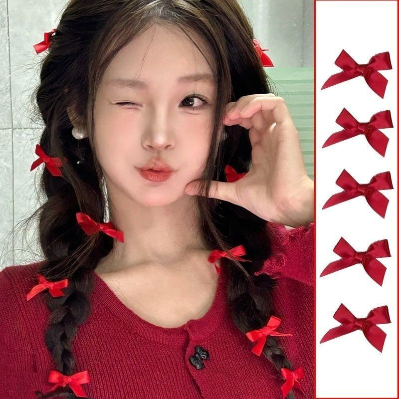 새해 빨간 활 머리핀 올매치 스몰 사이즈 헤어핀 새해 헤드웨어 달콤한 깨진 머리 앞머리 클립