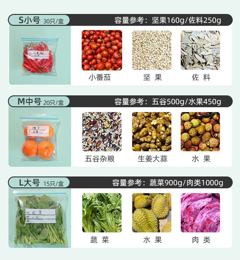 • 소형 30+중형 40+대형 30 총 100개 인기 판매 0k 이중 립 두꺼운 식품 등급 소재