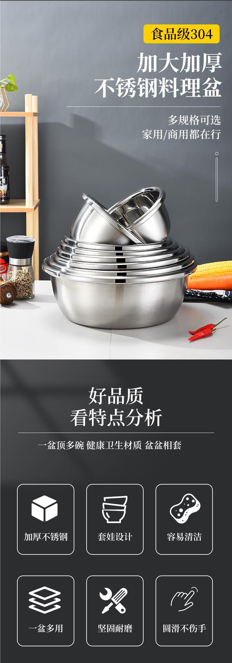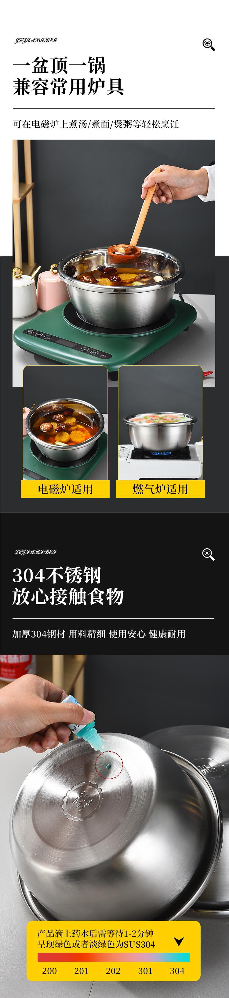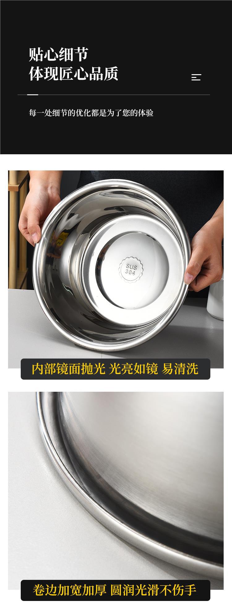 304 식품 등급 스테인레스 스틸 분지 가정용 주방 야채 세척 분지 및 분지 수프 분지 계란 구타 분지 베이킹 심화 분지