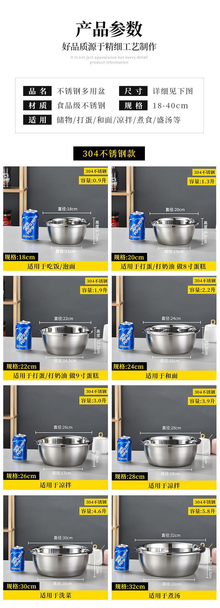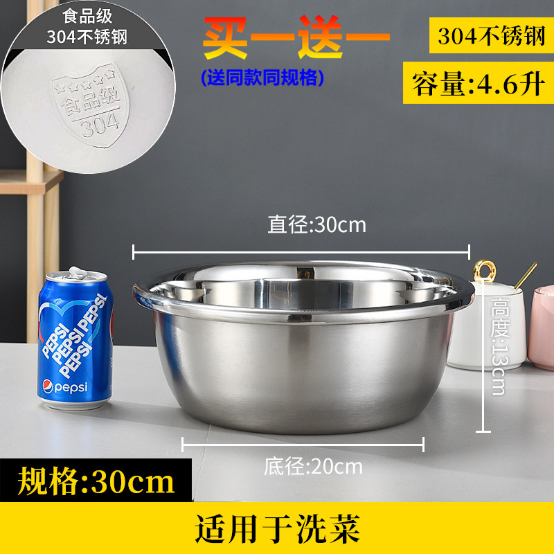 304 식품 등급 스테인레스 스틸 분지 가정용 주방 야채 세척 분지 및 분지 수프 분지 계란 구타 분지 베이킹 심화 분지스토어 가기