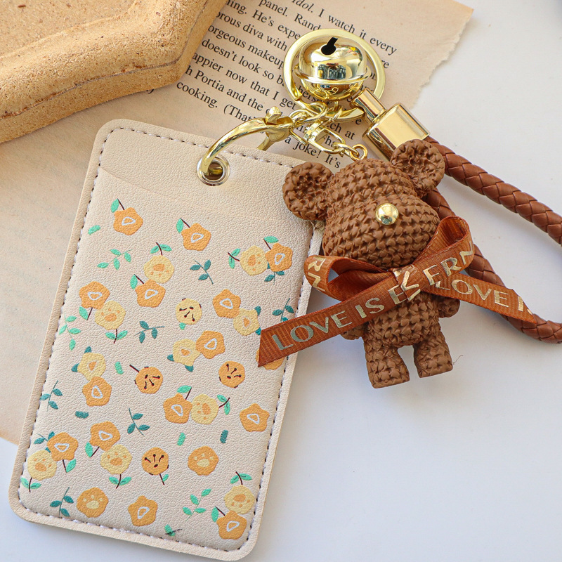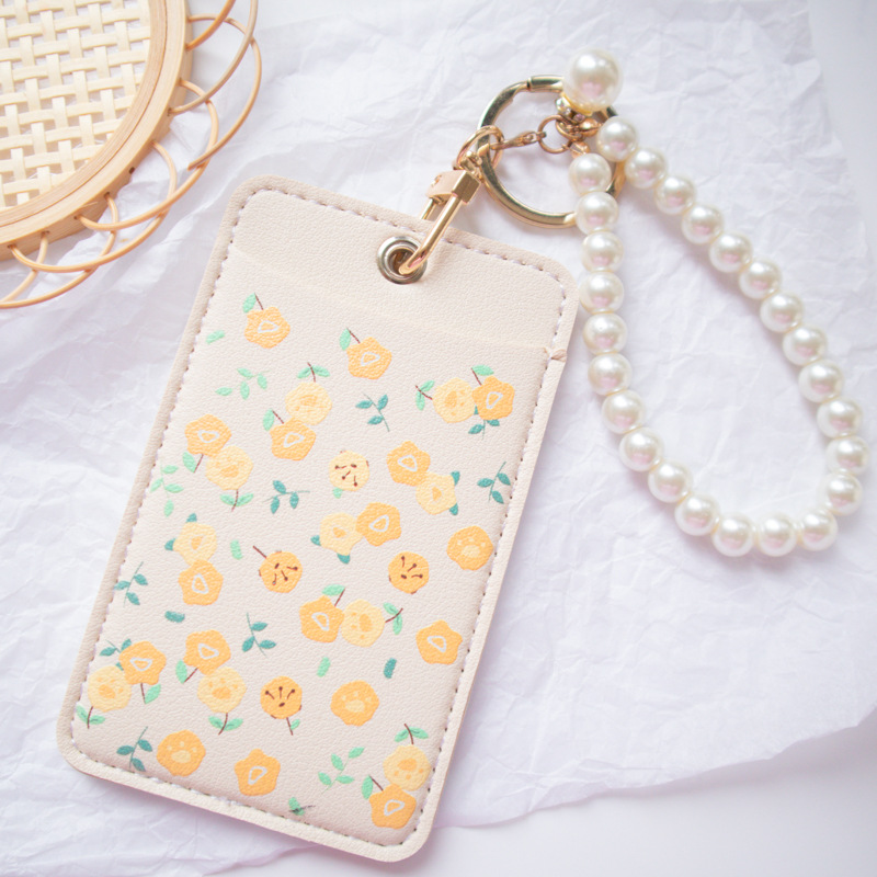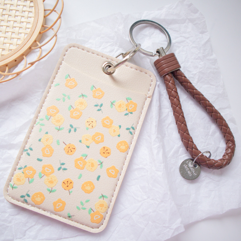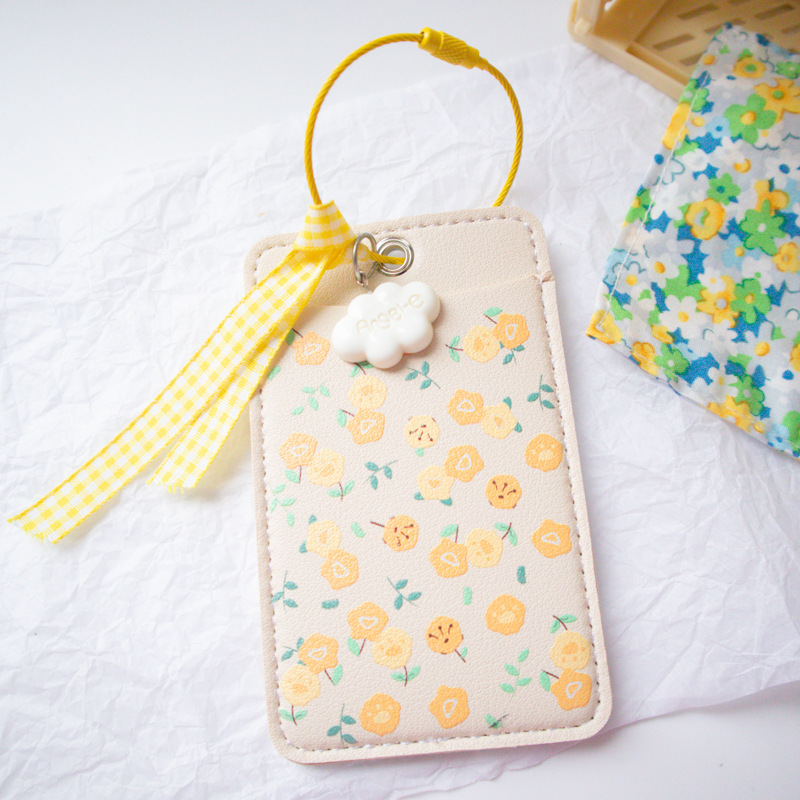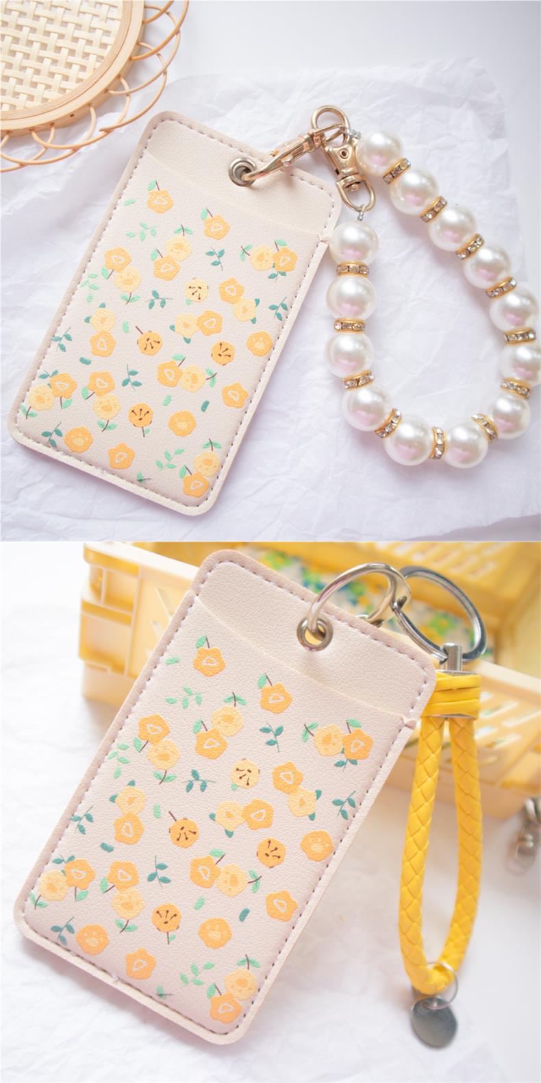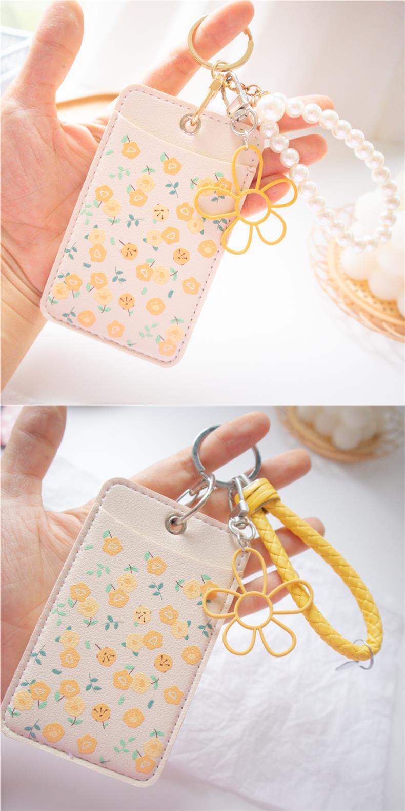 Ins 스타일 부드러운 가죽 노란 꽃 귀여운 신선한 소녀 학생 캠퍼스 카드 식사 카드 교통 버스 카드 세트스토어 가기