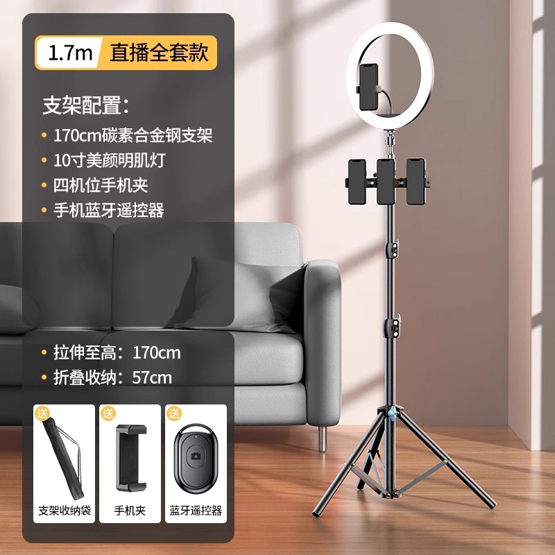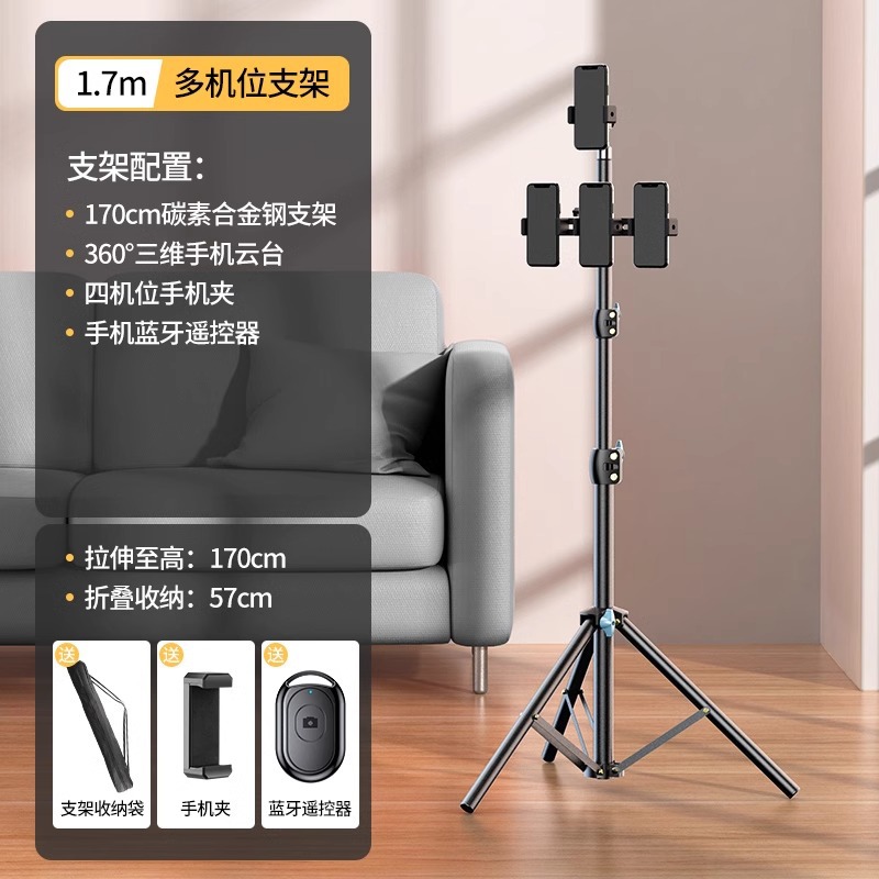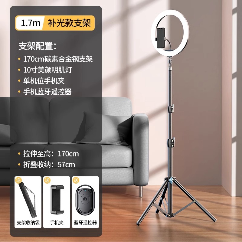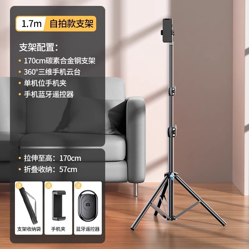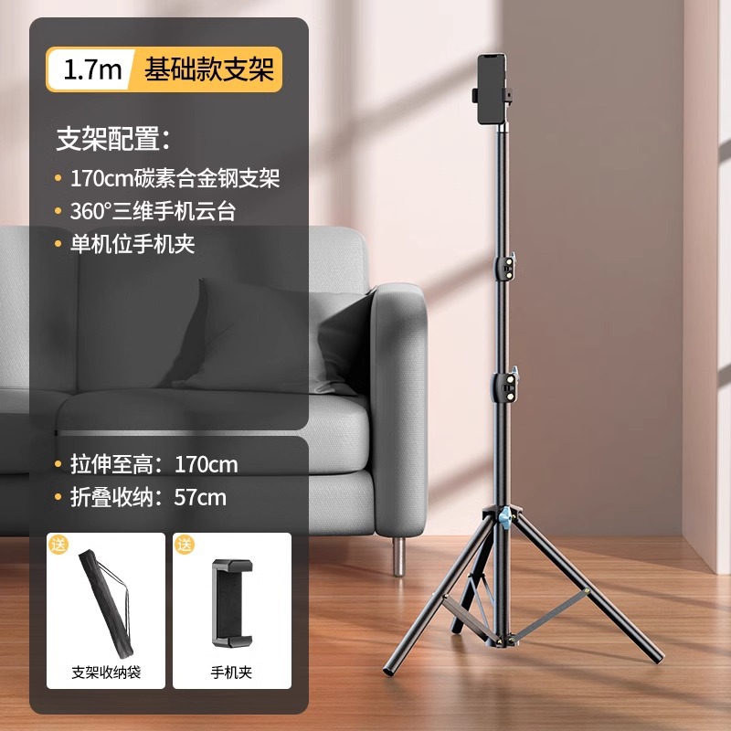 • 1.7m [두꺼운 탄소 합금 브래킷] 싱글 카메라 + 보관 가방 + 셀카 + 10inch 조명