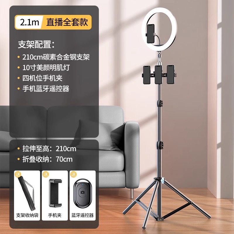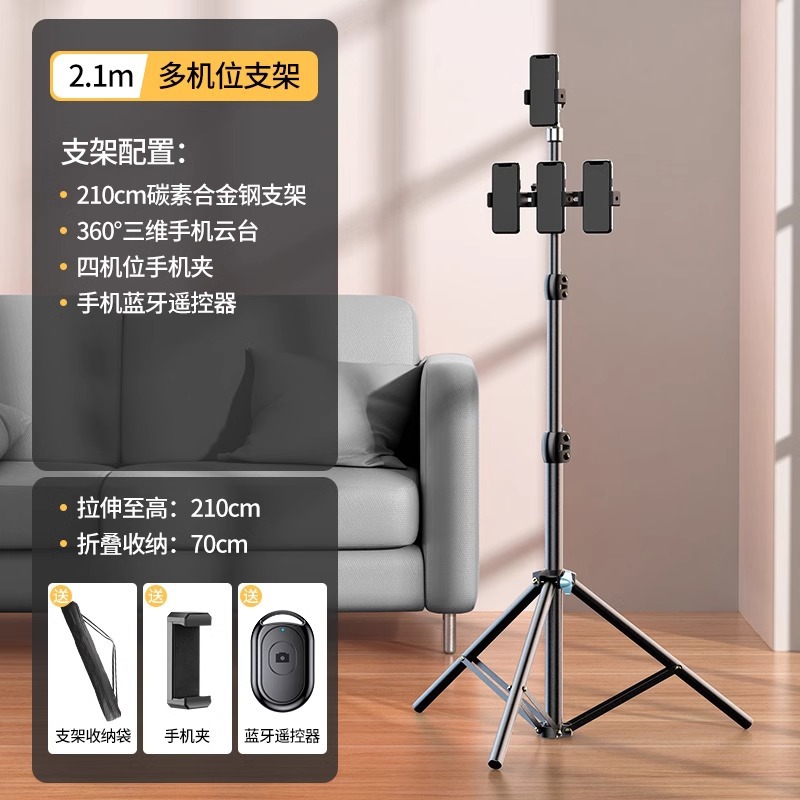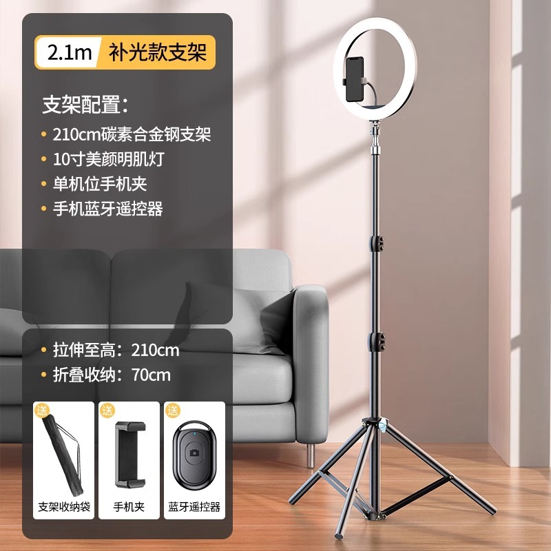 • 2.1m [두꺼운 탄소 합금 브래킷] 싱글 카메라 + 보관 가방 + 셀카 + 10inch 조명