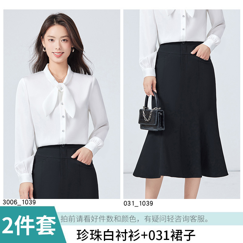 • 펄 화이트 셔츠 + 스커트