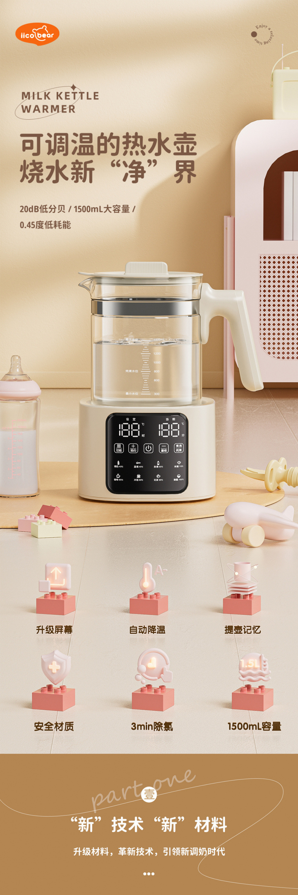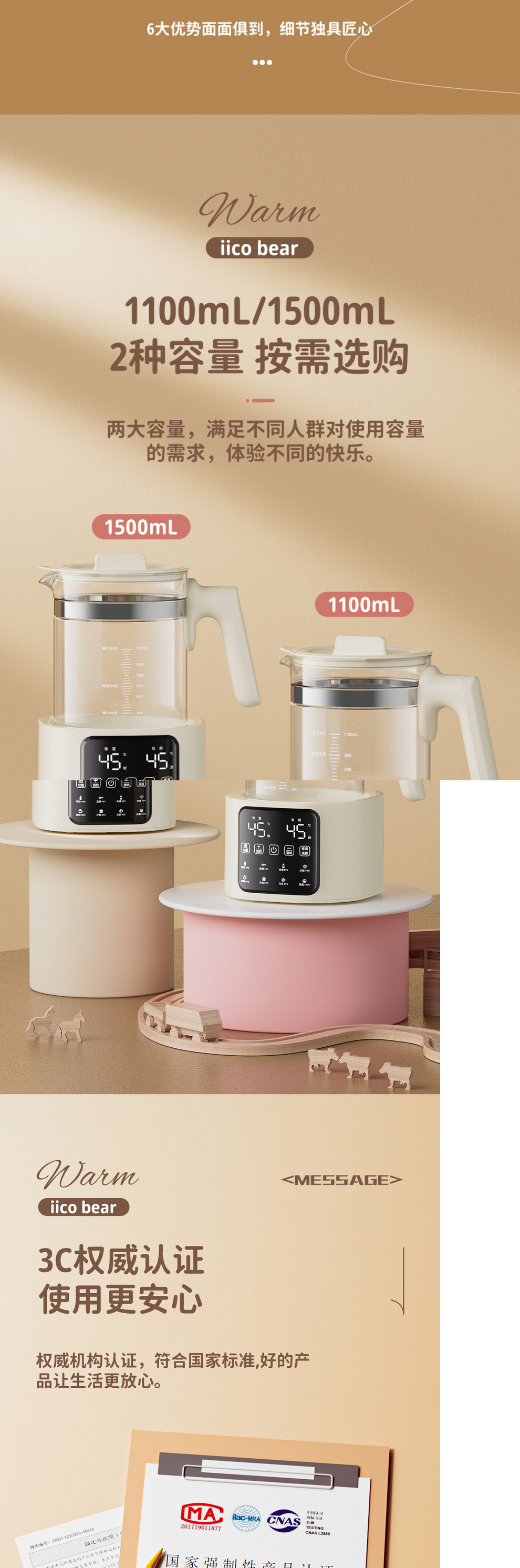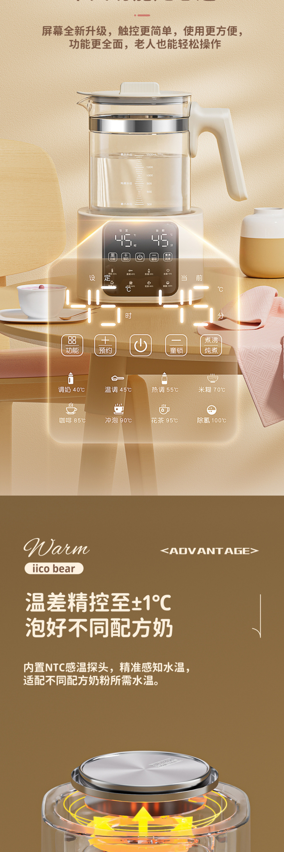 이크 베어 아기 자동 지능형 열 절연 가정용 주전자 다기능 양조 따뜻한 우유 컨디셔닝 우유 따뜻한 우유 인공물