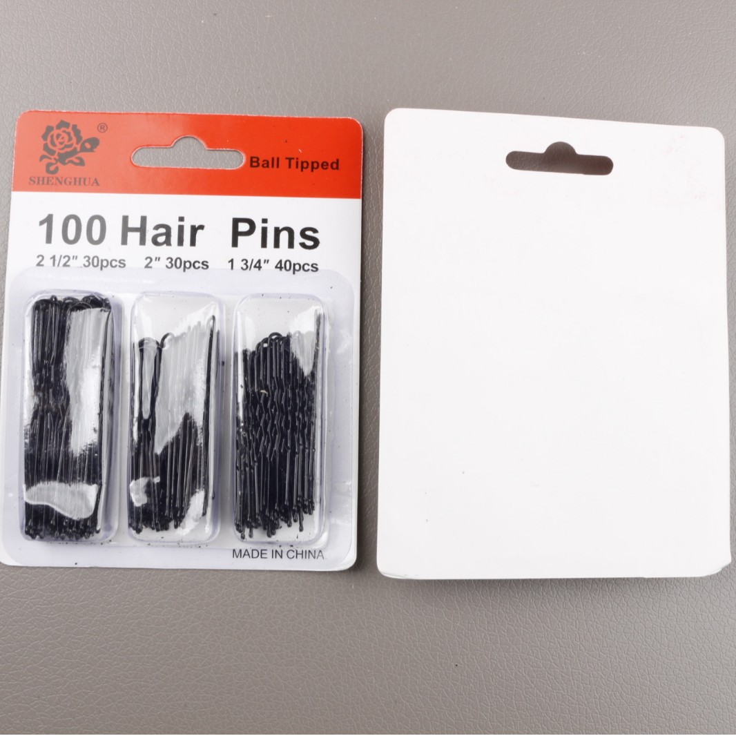 U자형 클립 플라스틱 포장 100개/카드 다양한 크기의 핀, 머리핀, 헤어핀 제조업체 도매