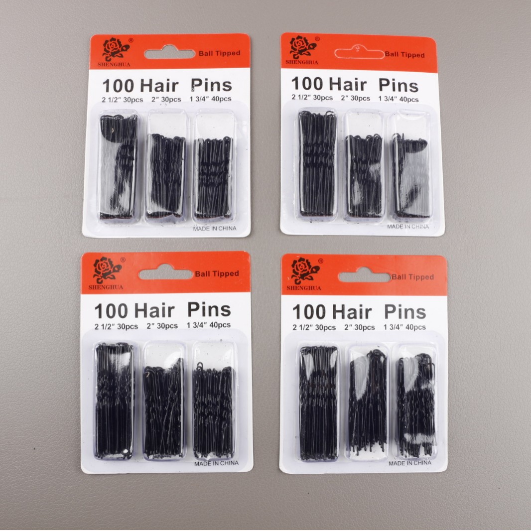 U자형 클립 플라스틱 포장 100개/카드 다양한 크기의 핀, 머리핀, 헤어핀 제조업체 도매스토어 가기