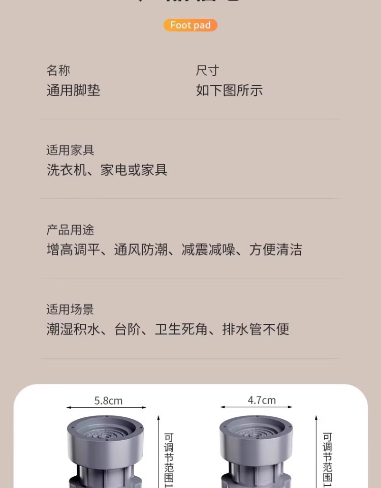 세탁기 풋 매트베이스 브래킷 미끄럼 방지 및 충격 방지 조정 가능한 높이 증가 냉장고 유니버설 드럼 하이얼 리틀 스완스토어 가기