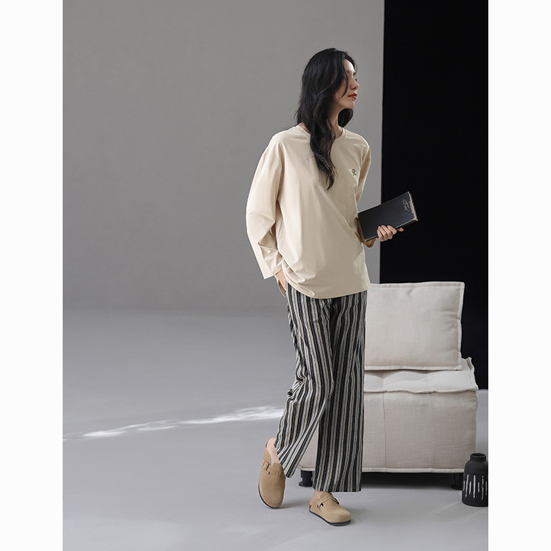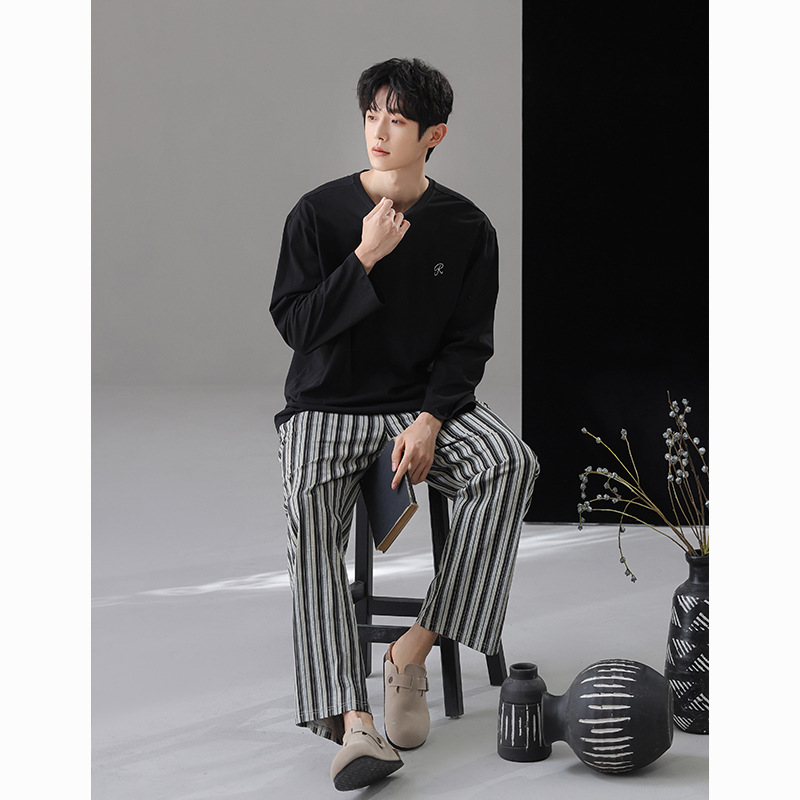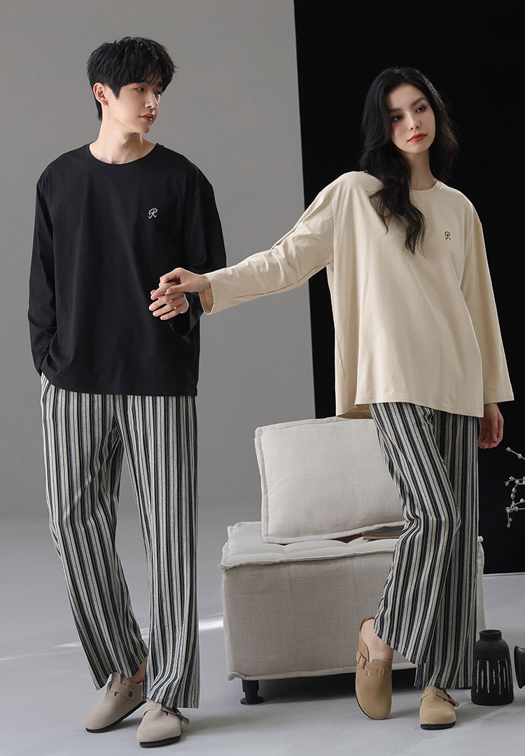 【순면 스트레치 코튼】커플 잠옷 신상 가을 긴팔 풀오버 순면 잠옷 여성 홈웨어 남성용