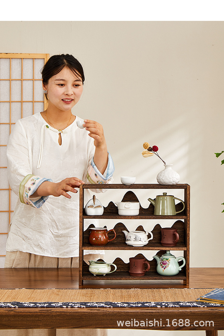 데스크탑 앤티크 랙 새로운 중국 스타일 골동품 스타일 골동품 랙 데스크탑 스토리지 랙 퓨어 솔리드 우드 마운틴 베이플 멀티 레이어 젠 랙스토어 가기