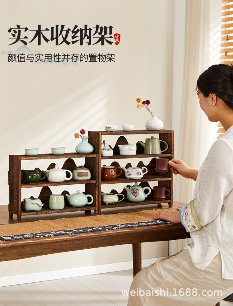 데스크탑 앤티크 랙 새로운 중국 스타일 골동품 스타일 골동품 랙 데스크탑 스토리지 랙 퓨어 솔리드 우드 마운틴 베이플 멀티 레이어 젠 랙