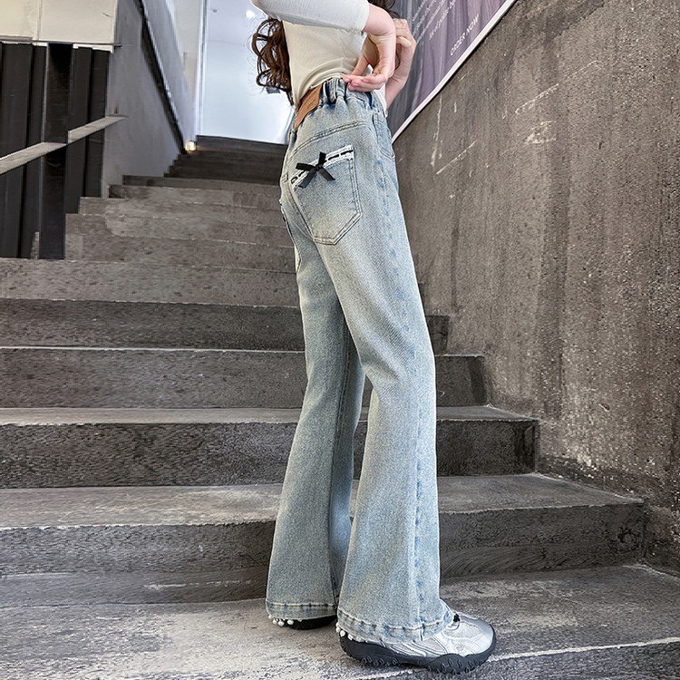 활 마이크로 플레어 청바지 여성용 빈티지 하이 웨이스트 슬림 핏 힙합 바지스토어 가기