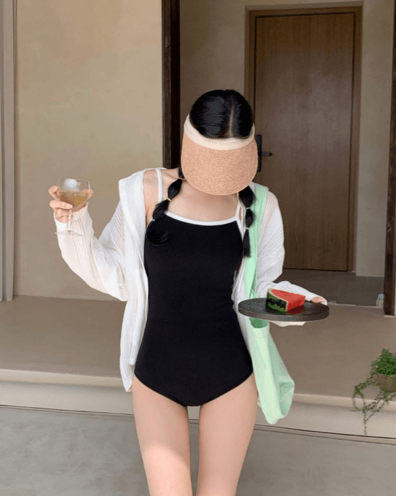 2025 새로운 솔리드 컬러 화이트 슬링 타이트 슬리밍 여신 보수적 인 봄 휴일 삼각형 수영복 여성