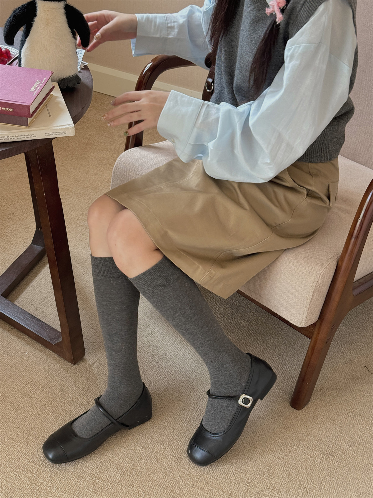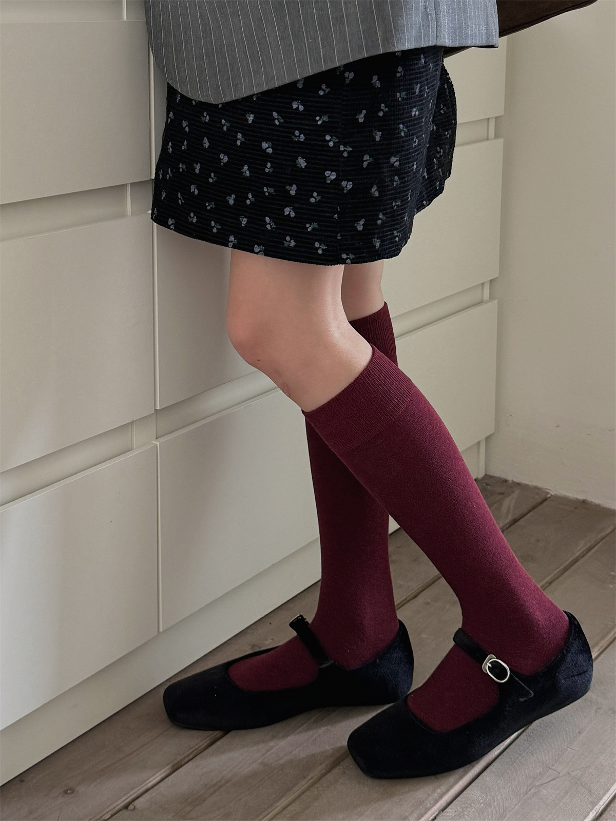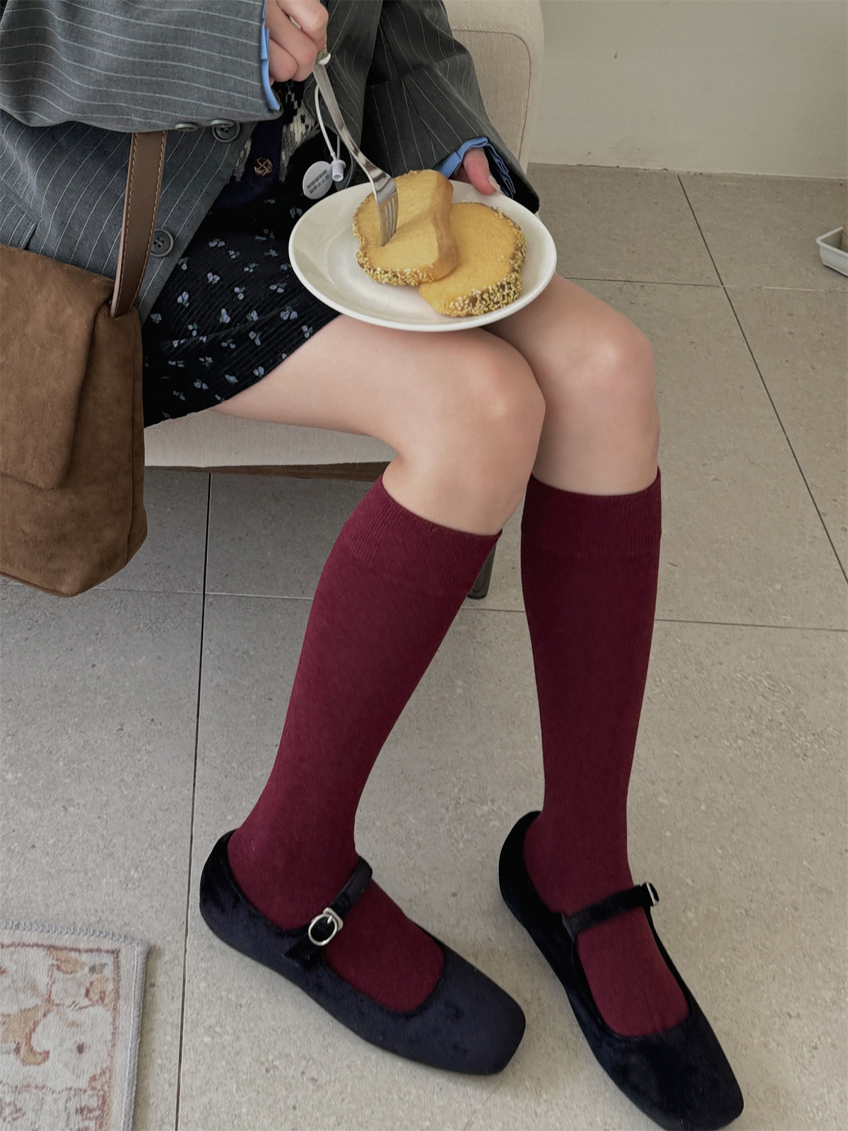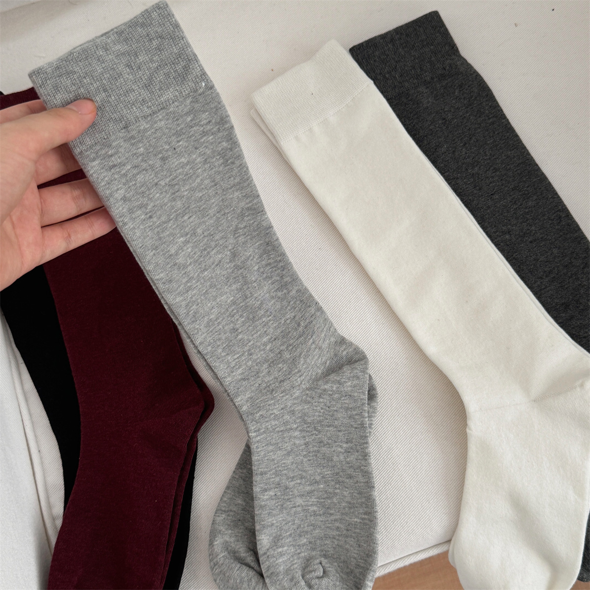 IOULOR 에어로빅 코튼 단색 뼈없는 종아리 양말 가을과 겨울 빈티지, 바람 스타킹 슬림 jk 양말 도매스토어 가기