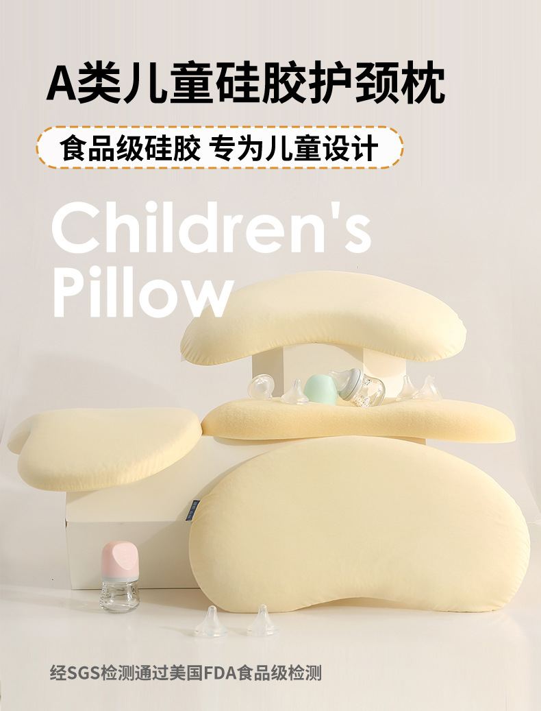 어린이 베개 실리콘 베개 수분 흡수 및 땀 통기성 고온 세척 가능한 아기 목 보호 능선 보호 완두콩 모양의 베개