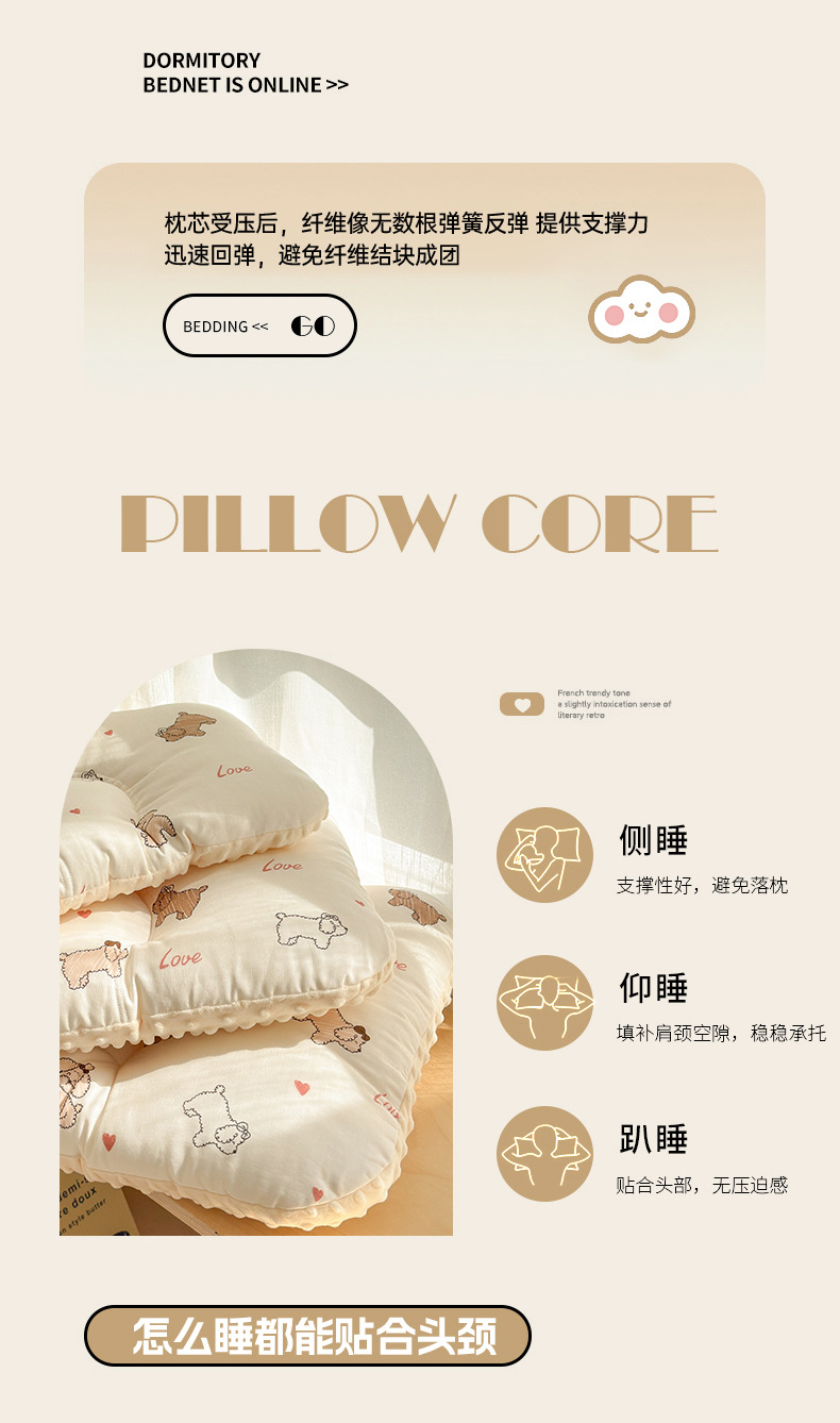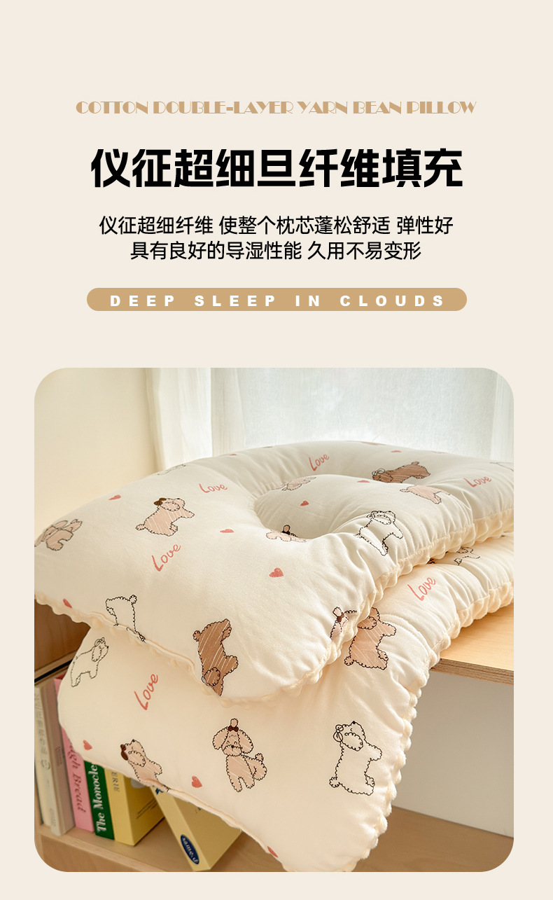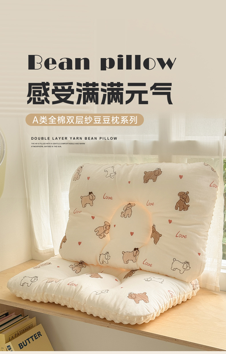 클래스 A 면 더블 레이어 원사 완두콩 벨벳 베개 어머니와 유아 학년 만화 면화 베개 어린이 싱글 완두콩 베개 도매스토어 가기