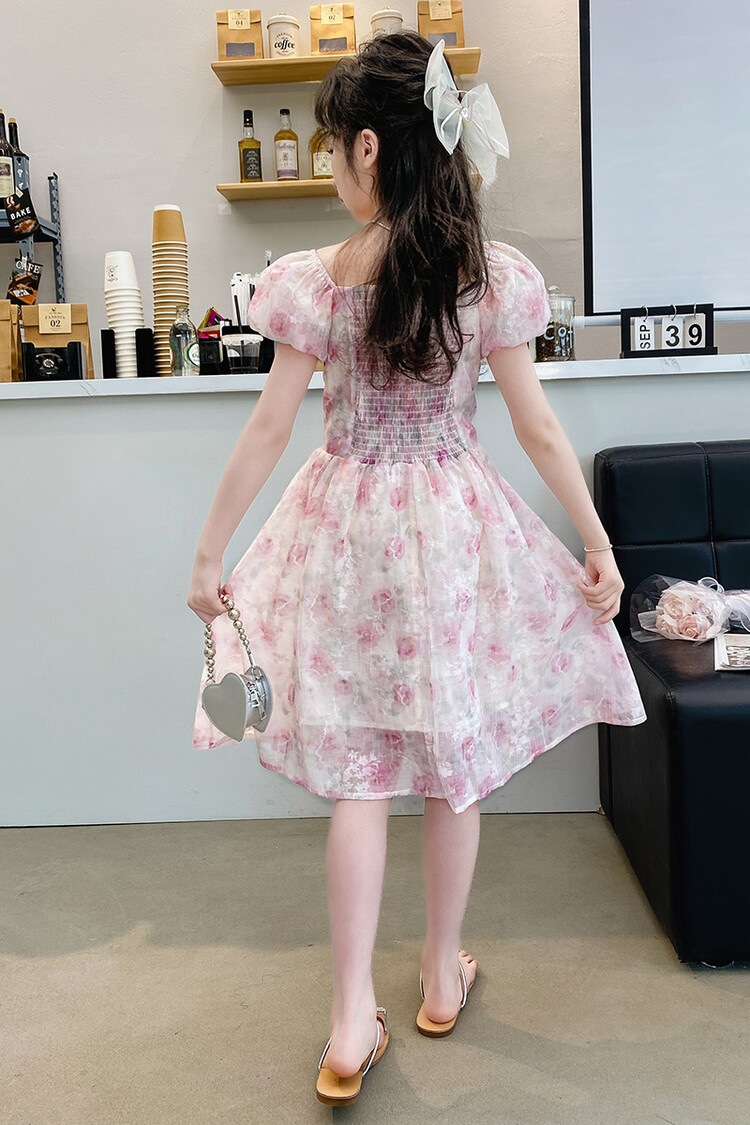 소녀 원피스 2025 년 여름 새로운 어린이 공주 원피스 서양식 소녀 스커트 큰 어린이 여름 원피스 꽃 원피스