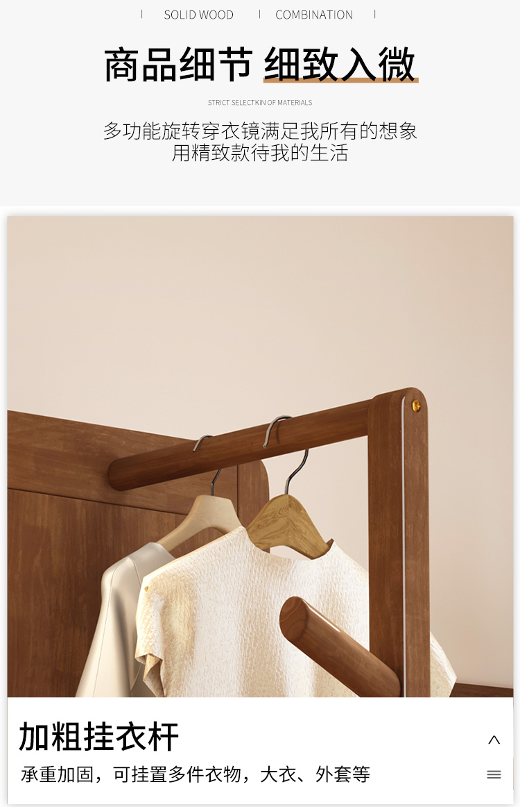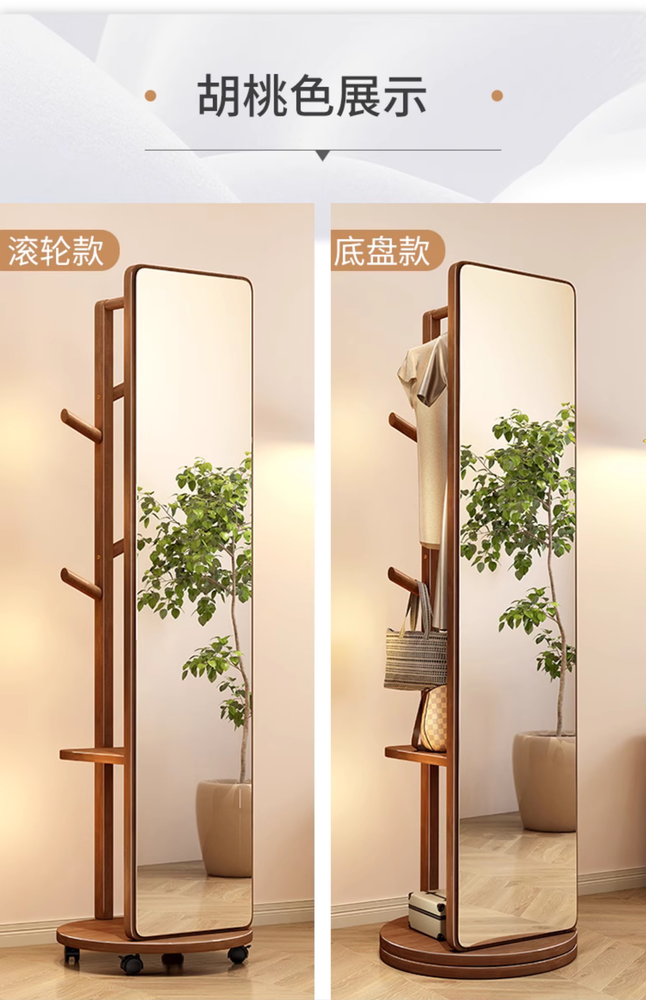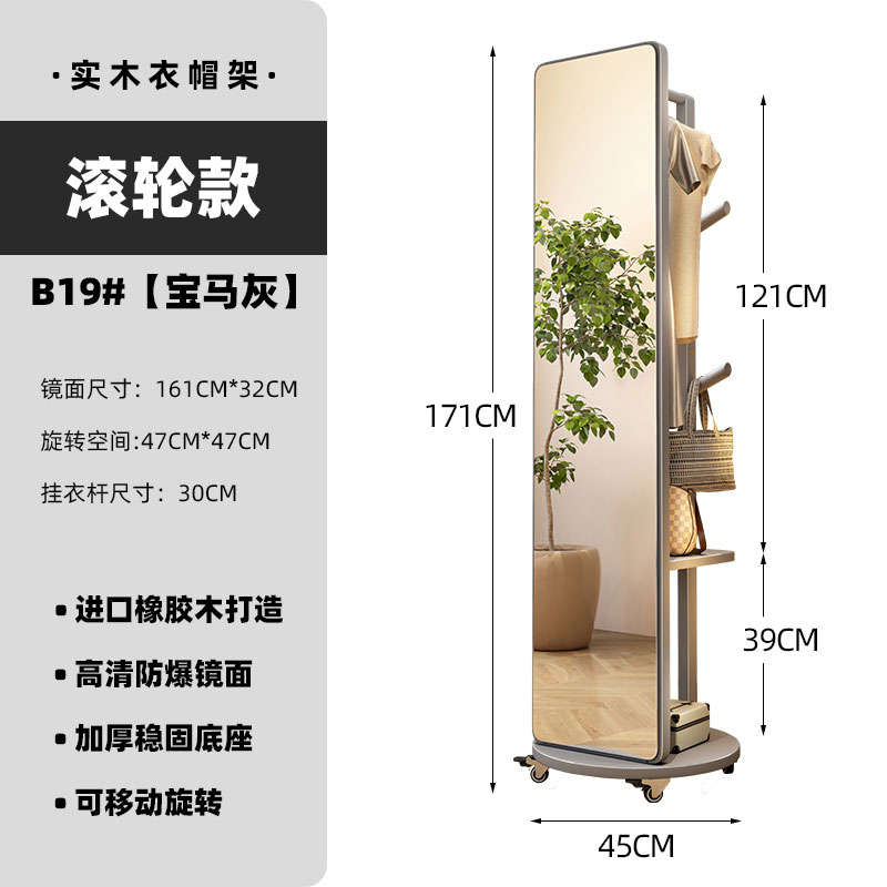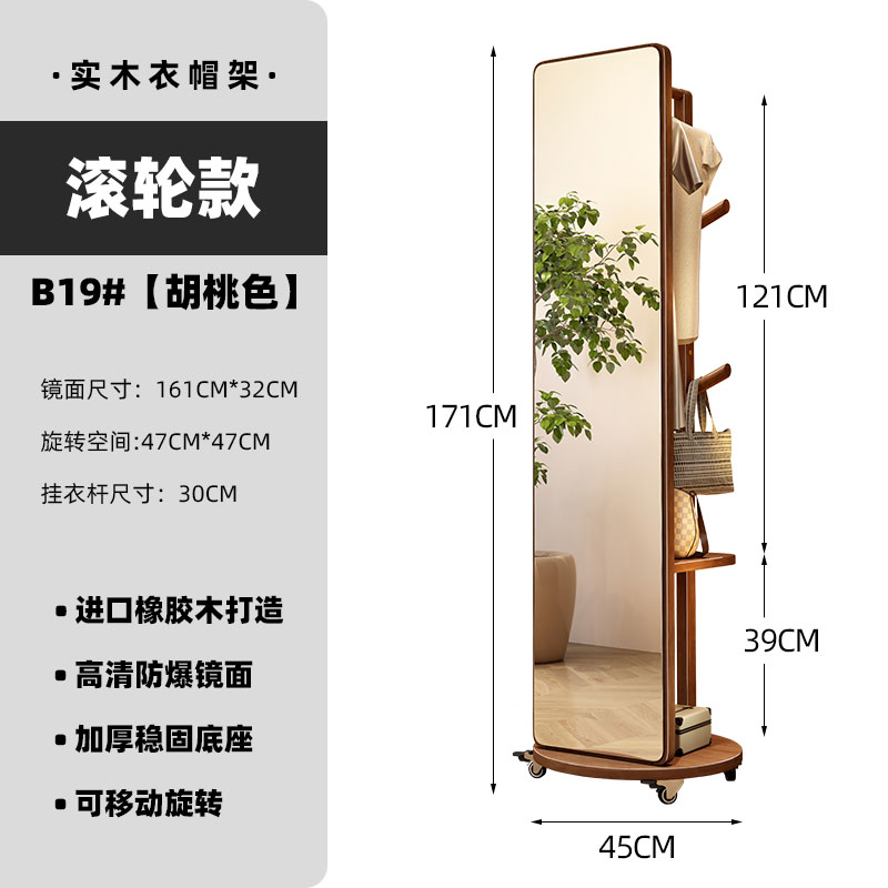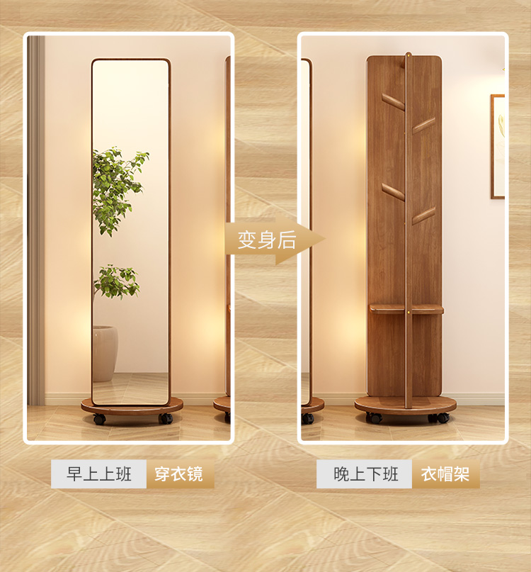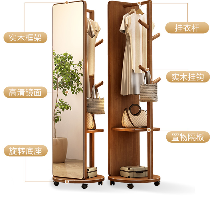 외투와 후드 기능이있는 거울 통합 모바일 코트 랙 걸이 침실 이끼 다기능 솔리드 우드 옷걸이스토어 가기